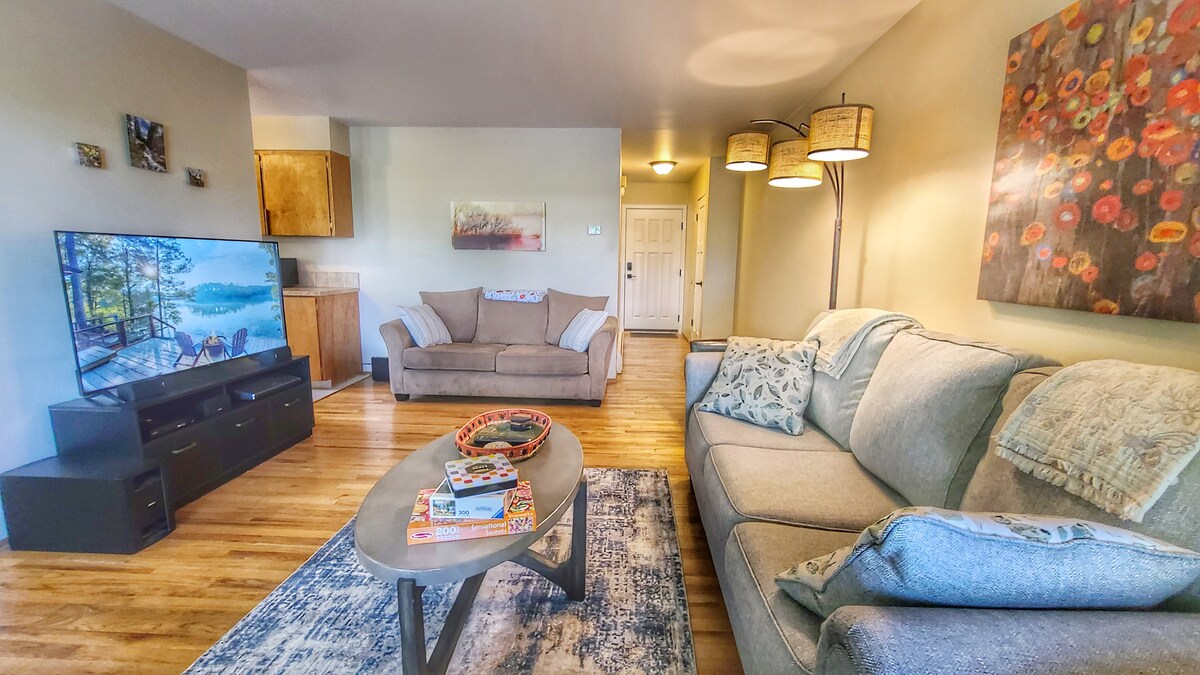 Vores hyggelige lejlighed ligger i Sandpoints Condo del Sol i centrum ved Lake Pend Oreilles kyster. Vi er i gåafstand fra alle de vidundere, som denne smukke bjergby har at tilbyde. Udforsk byens strand, unikke butikker, bryggerier og spisesteder kun få minutter væk. Vores "kom udenfor"-gæster kan få adgang til søen og cykel-/vandrestier lige uden for døren eller en kort 13 miles køretur for at udforske skønheden i vores skidestination - Schweitzer Mountain Resort.