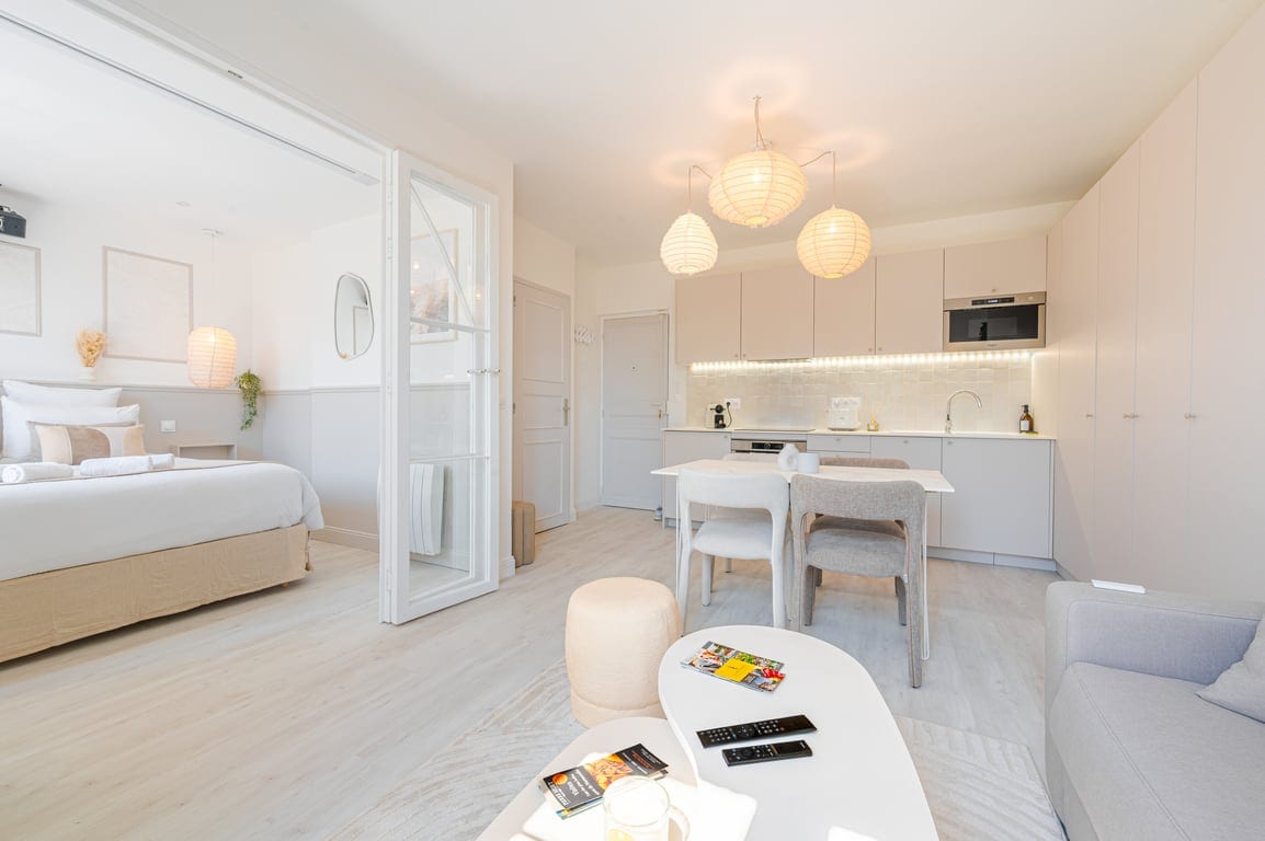 I det historiske centrum af Caen, ved siden af rådhuset og l'abbaye aux hommes, ligger denne gamle lejlighed på 65m2, der er fuldstændig renoveret. Lejligheden ligger i stueetagen og har udsigt til en lys gårdhave og have, og den omfatter et fuldt udstyret åbent køkken, stue med sovesofa, soveværelse med dobbeltseng, badeværelse med bruser og badekar. En sydvendt terrasse med udsigt over en lukket og solrig have, parkering mulig i gården. Tv, Wi-Fi, strygejern og strygebræt, hårtørrer, håndklæder og sengetøj.