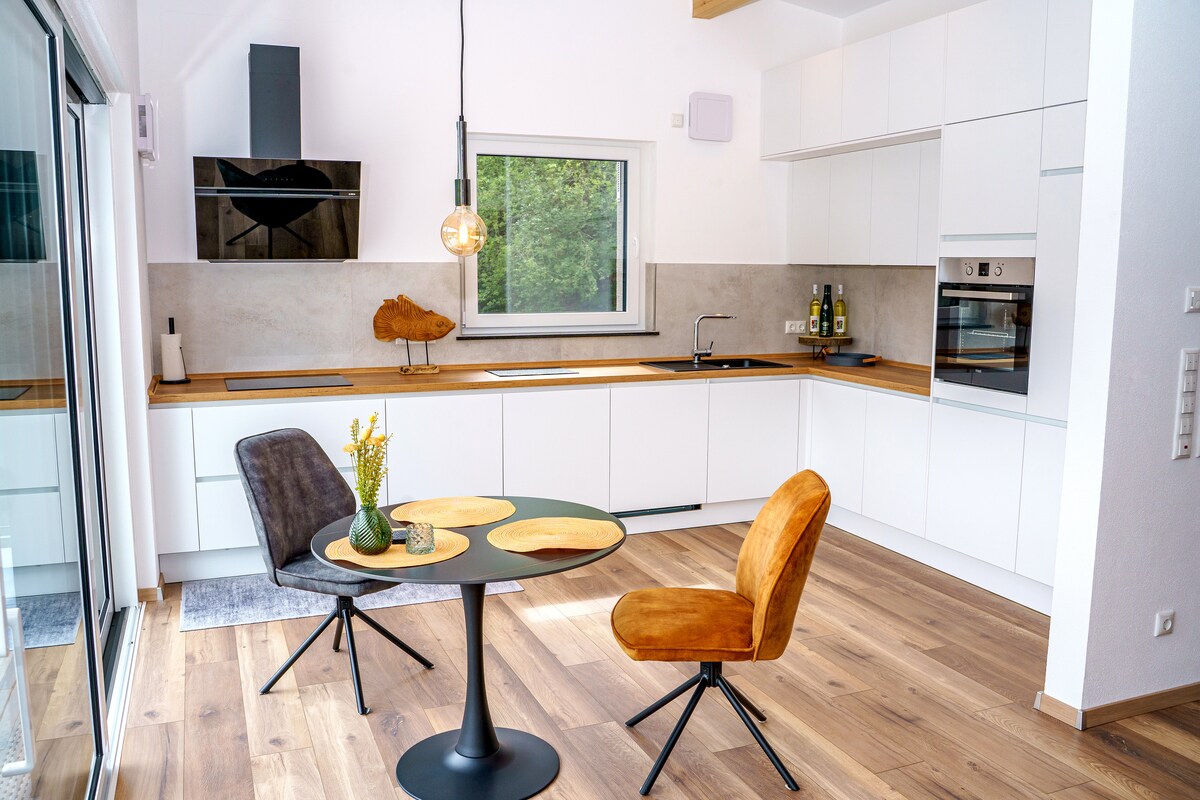 Vores charmerende hytte i Bell, kun 2 km fra den vulkanske sø Maria Laach, huser to eksklusive ferielejligheder. Lejligheden ovenpå med pejs og stor solterrasse tilbyder dig en stilfuld stue med åbent køkken og hyggelig spiseplads. Et soveværelse med en boxspring-seng af høj kvalitet, et omklædningsrum og et moderne badeværelse sikrer maksimal boligkomfort. Perfekt til afslapning, vandreture, cykling eller bare nydelse – midt i naturen i den vulkanske Eifel.
