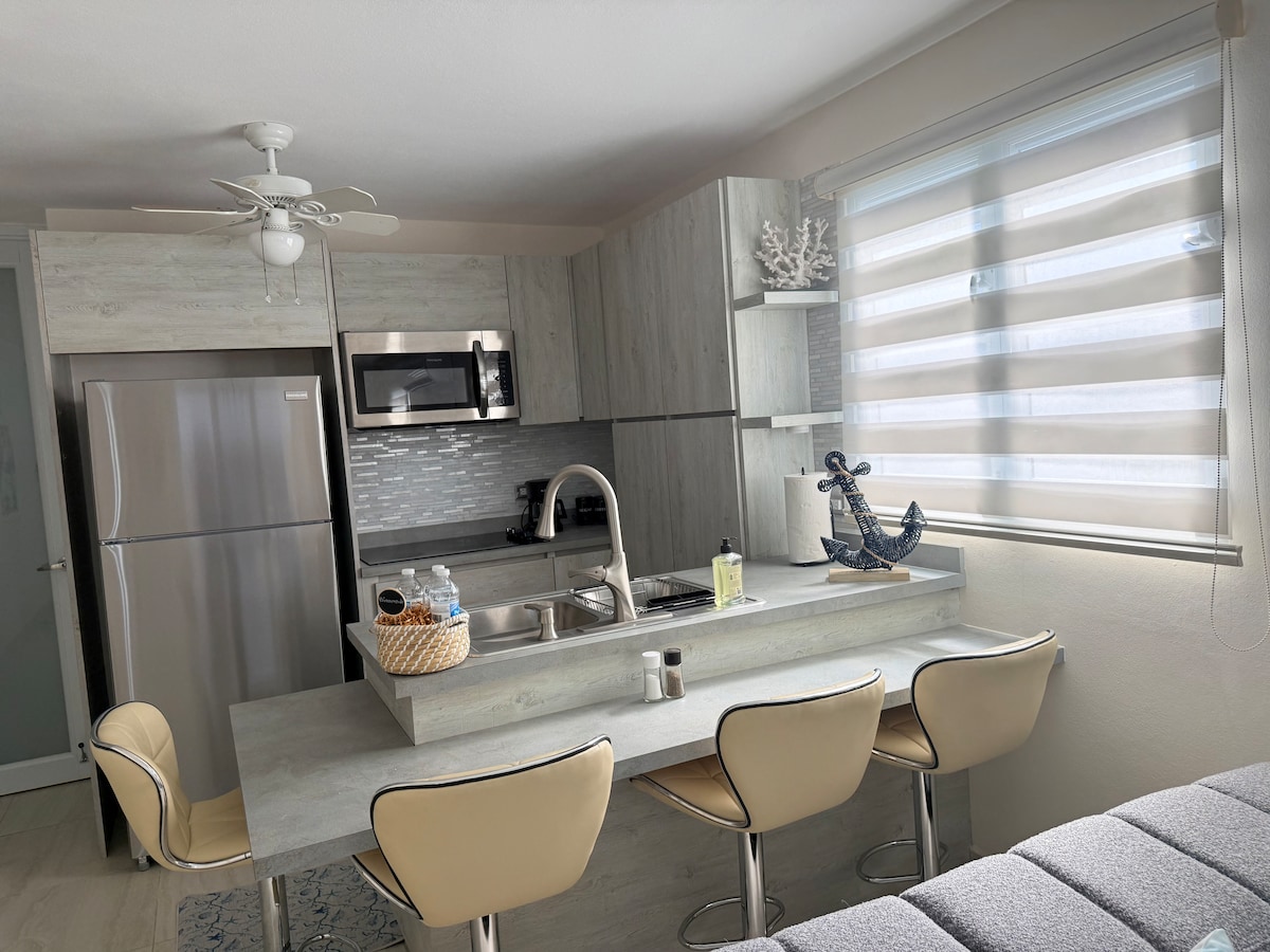 Luksusvilla i hjertet af Poblado Boqueron i Cabo Rojo. Gangafstand til stranden, barer, restauranter, butikker, dagligvarebutikker, kirker, hæveautomater, vandsportsaktiviteter og udlejning. Villaen er fuldt møbleret og udstyret med alt, hvad du behøver for at nyde din ferie. Et soveværelse med queensize-seng og en queensize-sovesofa i stuen. Villaen har vandvarmer, vaskemaskine og tørretumbler, håndklæder, sengetøj, aircondition i alle områder 2 - 55” HD TV og Wi-Fi.