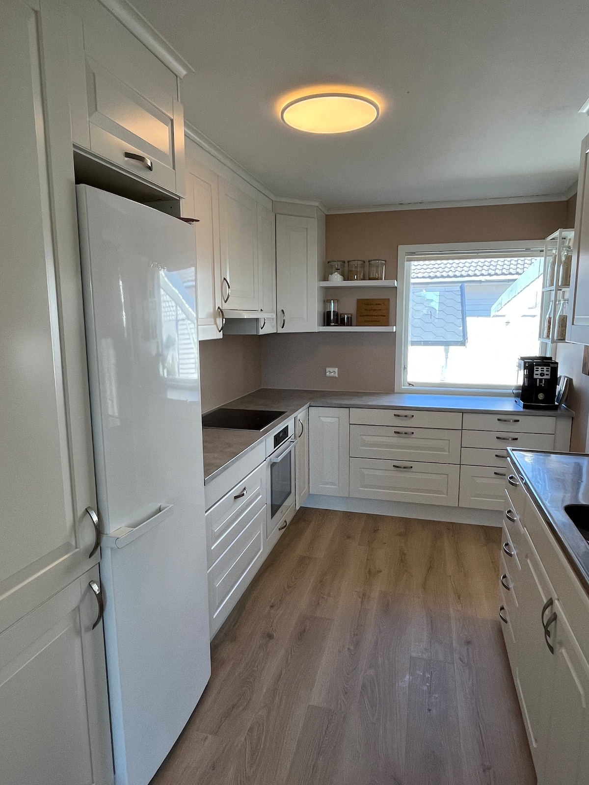 Glem dine bekymringer i dette rummelige og fredelige sted! Der er nem adgang til strande og kystlinje, hvor du kan nyde gåture, løb, svømning, vandsport osv. plus gode cykelruter ved Jæren. Der er en kort køretur til butikker (Voll/Klepp) og ca. 40 minutter til Stavanger og attraktioner i regionen. Hytten har en stor terrasse med udsigt uden afskærmning og gode siddepladser, grill og stor græsplæne. Åbent køkken/stue med pejs, varmepumpe og basale faciliteter. Tre soveværelser, der er ideelle til fem og enkelt badeværelse med bruser.