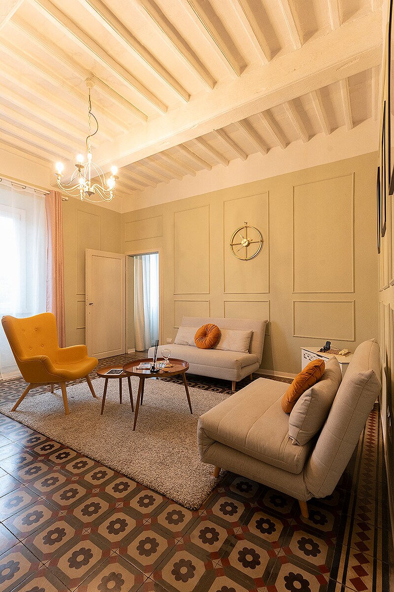 Only a Four minute drive away or 20 mins walk from the city and the Lucca train station stands La Dimora Dei Conti a superb luxury apartment located in a farmhouse villa that dates back to the 15th century and now completely and painstakingly renovated to transport you to the an era of modern beauty and traditional Tuscan feeling.<br><br>As soon as you enter the foyer you will feel the special atmosphere that permeates the villa.