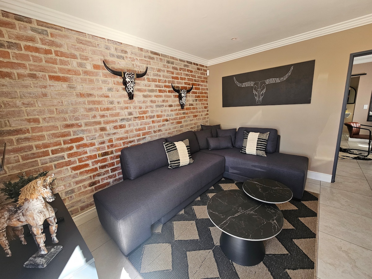 Ikke mere strømafbrydelse, vi har solenergi! Ideel beliggenhed for den travle virksomhed eller kunstner. Det er stilfuldt og luksuriøst. Har alt, hvad man har brug for, at vende tilbage til efter en hård dags arbejde. Stort brusebad, fantastisk smart-tv, så du kan se alle dine yndlingsserier. Udstyret med mikrobølgeovn, køleskab, kedel, airfryer og brødrister. Hvad mere har du brug for? Indkøbscentre, restauranter og vaskeri i nærheden. Aftengåture eller cykling i Majik-skoven. Vingårde i nærheden. Centralt for alt.