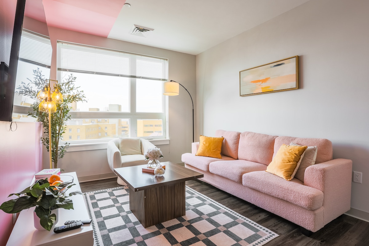 Spacious 2BR w/ Free Parking • Steps to Train