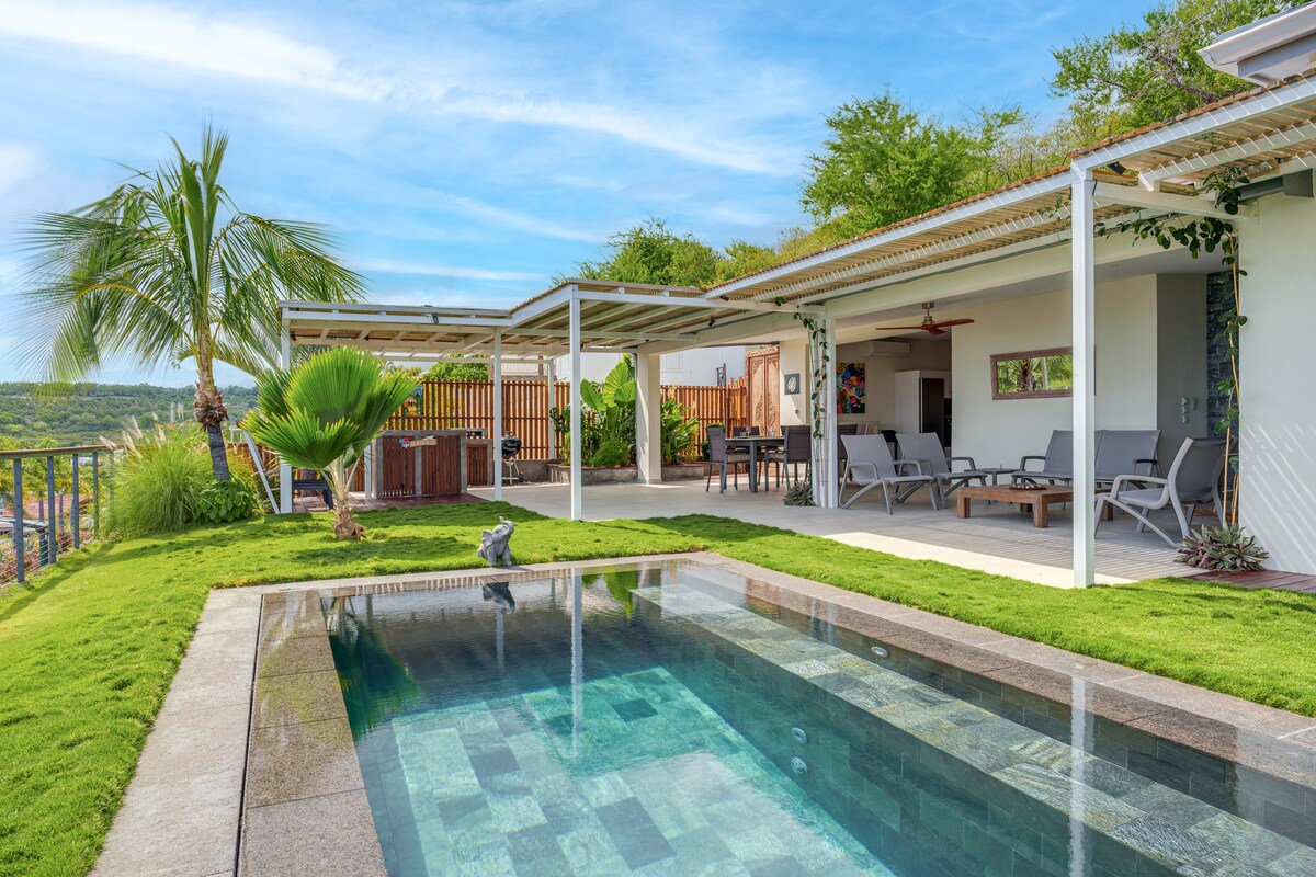 Villa Serenity er et fristed beliggende på øens vestkyst. Vores villa har en ideel beliggenhed mellem hav og bjerg og tilbyder dig en pause med ro og komfort for et uforglemmeligt ophold. Villaen ligger et par minutter fra strandene (Boucan Canot, Saint-Gilles) og har en rolig og sikker beliggenhed. Nyd en privat swimmingpool omgivet af en tropisk have og et udendørs loungeområde (pavillon, grill, bordfodbold, liggestole).