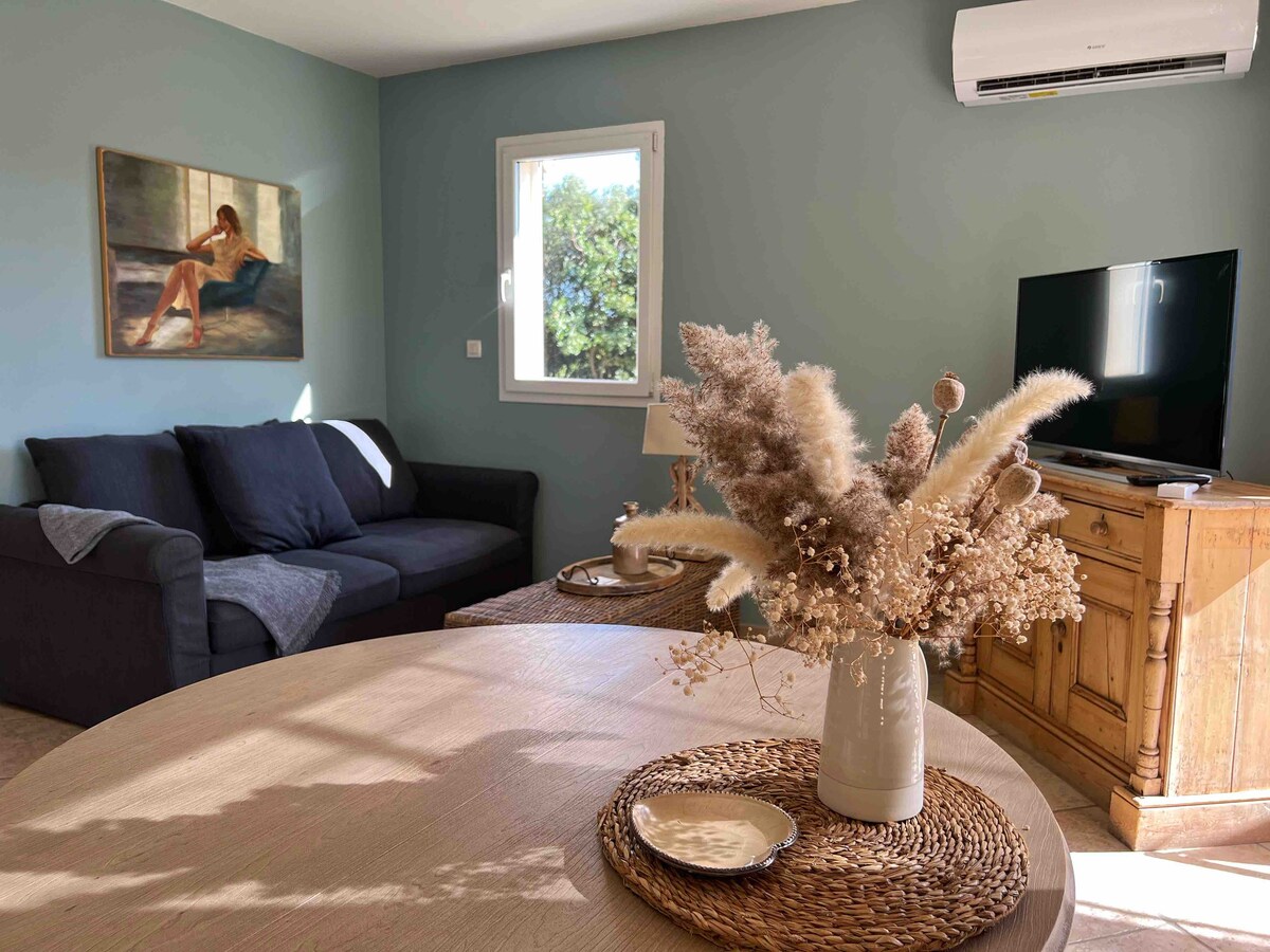 Møbleret turistbolig klassificeret 4*: 65m2 i grønne omgivelser. Den private terrasse har udsigt over en skov af egetræer og fyrretræer med udsigt over bakkerne. Et soveværelse med en dobbeltseng (hotelkvalitet) og et tilstødende badeværelse + et fuldt udstyret åbent køkken, der åbner op til en stue med 2 enkeltsenge. Komplet udstyr, swimmingpool, der deles med ejerne Vi vil med glæde dele de gode adresser i området, hvis rejsende ønsker det.