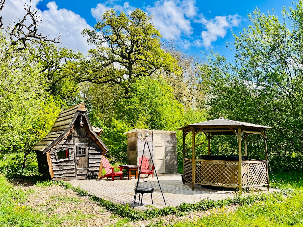 Dyk ned i det usædvanlige og eksotiske univers i den magiske hytte! Nyd roen på den 3 hektar store ejendom, midt på landet. De idylliske omgivelser nær Ardres-søen er ideelle til at genoplade batterierne. Den kan rumme 2 personer (queen size seng) til en magisk nat. Nordisk bad på terrassen koster 50 € ekstra (betales på stedet). Eller book vores wellness-område (jacuzzi, sauna, hammam, ...) mod et tillæg (100 € for 2 personer i 2 timer).