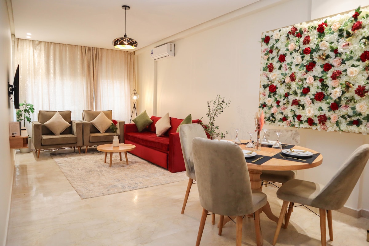 Profitez d'un logement élégant et central disposant de tout le confort moderne. Entièrement neuf, profitez de ce logement idéalement situé dans le triangle d'or de Casablanca. La connexion Wifi , la climatisation, la cuisine équipée, la salle de bain moderne et fitness sur le toit vous permettront de profiter au mieux de votre séjour à Casablanca. De plus une équipe dédiée sera disponible pour toute question. Réservez dès maintenant!