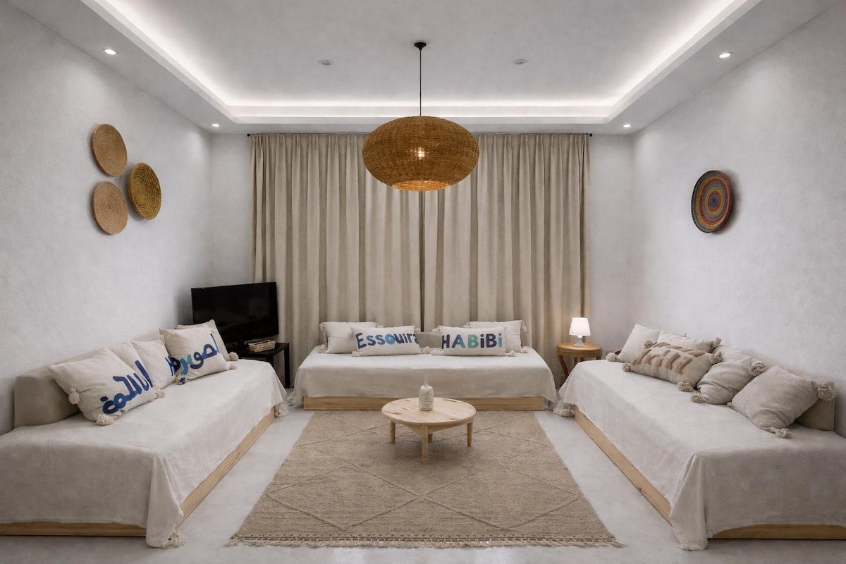 Dar Tikida Soleil er en lys, luftig villa i Ghazoua – kun 8 minutter fra Essaouira, 10 minutter fra Sidi Kaouki Beach og 8 minutter fra lufthavnen. Ejendommen har 2 soveværelser, 2 badeværelser, en rummelig stue, en privat pool og en terrasse med åben udsigt over det omkringliggende landskab. Hjemmelavet morgenmad og daglig rengøring er inkluderet. Perfekt til par, familier eller fjernarbejdere, der leder efter ro.