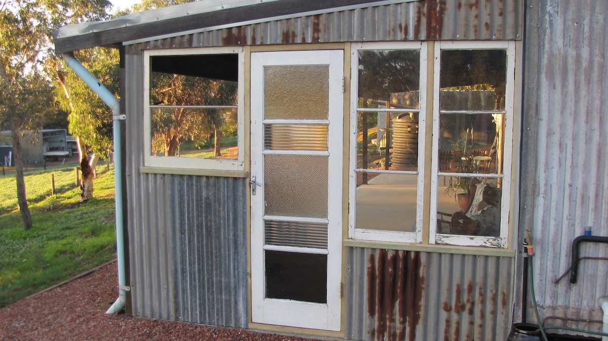 Quaint & Quirky. Ren, selvstændig indkvartering, der passer til to. Separat soveværelse, stue og badeværelse (inklusive WM). Lille hobbygård med hunde, geder og høns. Tæt på Blackwood River. Bridgetown & Boyup Brook kun 15 minutter væk i bil. Omgivet af smukke bølgende bakker og landbrugsjord. Sid i de komfortable udendørsstole, mens du ser solnedgangen. Hyggeligt udendørs bål om vinteren. # Strengt forbudt at ryge på ejendommen # Telstra er den eneste mobiltjeneste # Ingen kæledyr