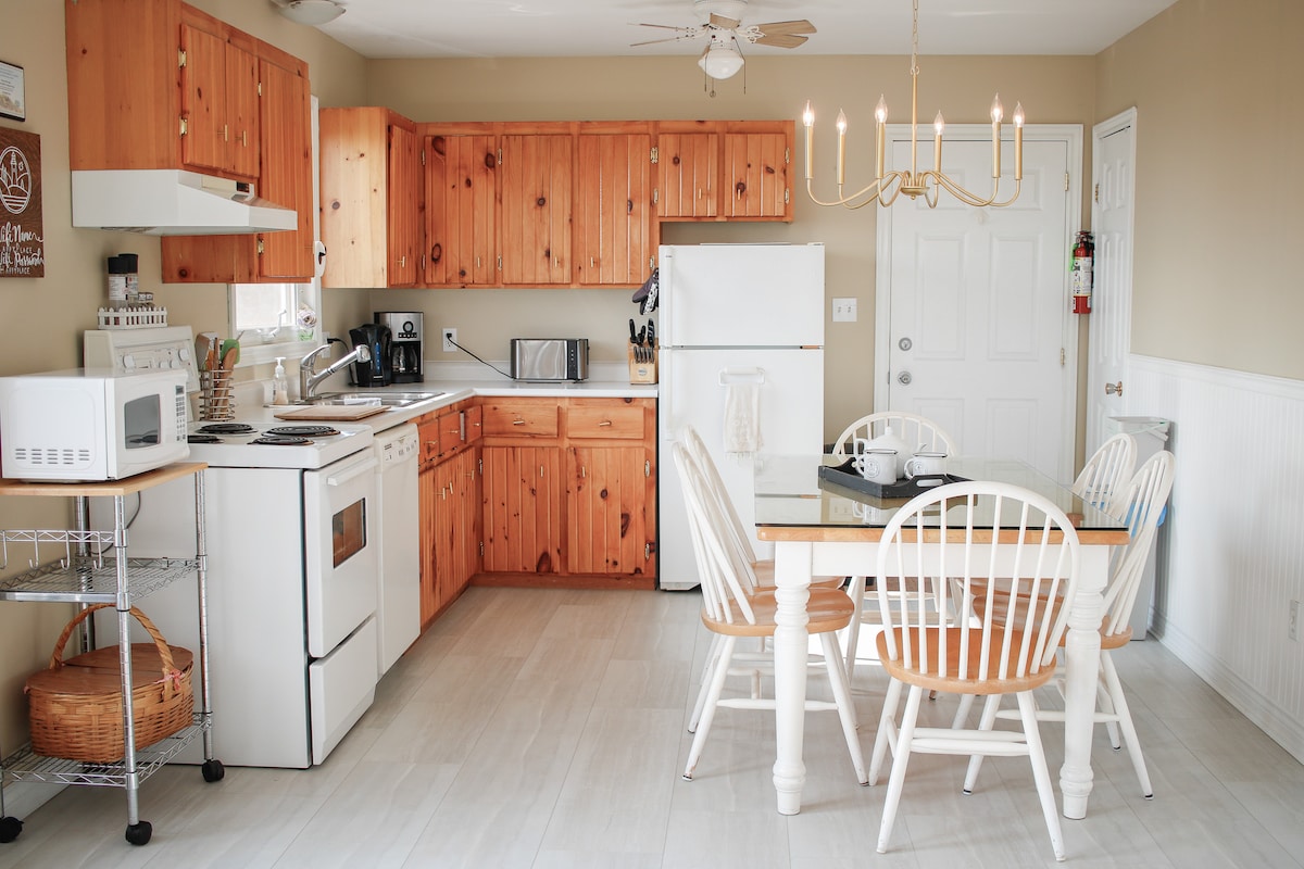 Perfekt centralt beliggende til alle dine PEI-eventyr. Tilbring din tid i det hyggelige loft med at læse, øve dit golfsving, slappe af på verandaen eller snakke ved bålet. Denne 2 soveværelser sover 6, med 2 ekstra enkeltsenge på loftet. Indtjekning uden vært er mulig. Wi-fi, fuldt køkken, aircondition, varme, vaskemaskine/tørretumbler. Tilgængelig hele året. Tæt på flere lokale attraktioner og golfbaner. I juli/august er der et minimum ophold på syv nætter.