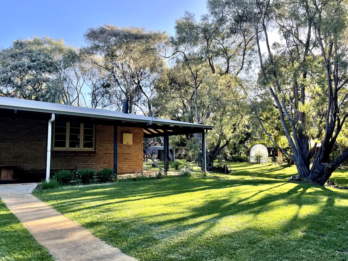 Tæt på Margaret River og Margaret River Township. Fantastisk beliggenhed og store haver. Et privat selvstændigt roligt hus, soveværelse med eget badeværelse, 2. soveværelse med queensize-seng, 3. soveværelse med en dobbeltseng og 3 enkeltsenge, familiebadeværelse, vaskeri, åben planløsning stue/spisestue/køkken med brændeovn. Tæt på floden og svømmehuller, vandring, cykel- og bushstier. En smuk 10 minutters gåtur langs floden ind til byen. Denne ejendom er ideel til par, familier eller små grupper.