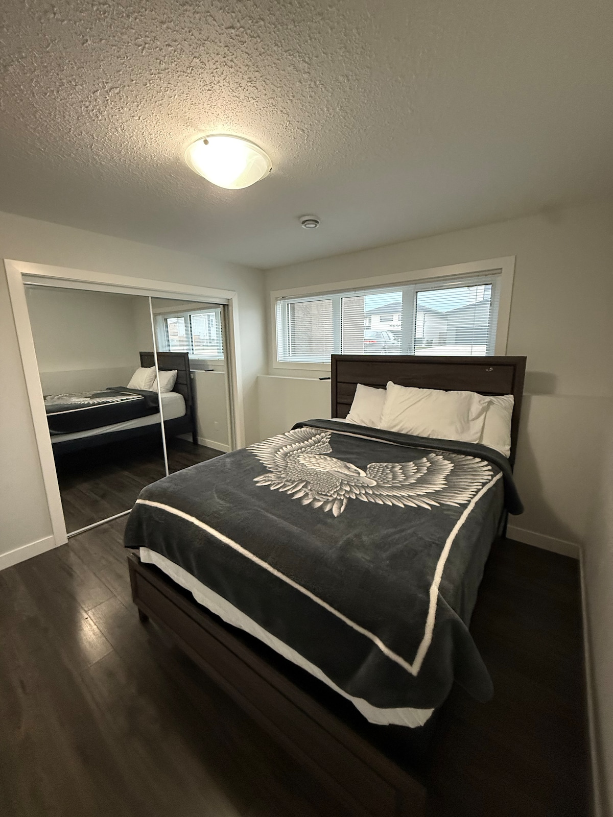 Enjoy a comfortable stay in a cozy, well-furnished 2 bedrooms, 2 queen beds located in a stylish home right in the heart of Brandon. The home includes access to amenities such as: Fully equipped kitchen,1.5 bathrooms, WiFi, TV with Netflix,Air conditioning, Washer and Dryer. Conveniently located close to a bus stop, Superstore, and other essential amenities, perfect for families, professionals, or travellers seeking a quiet, central place to stay.