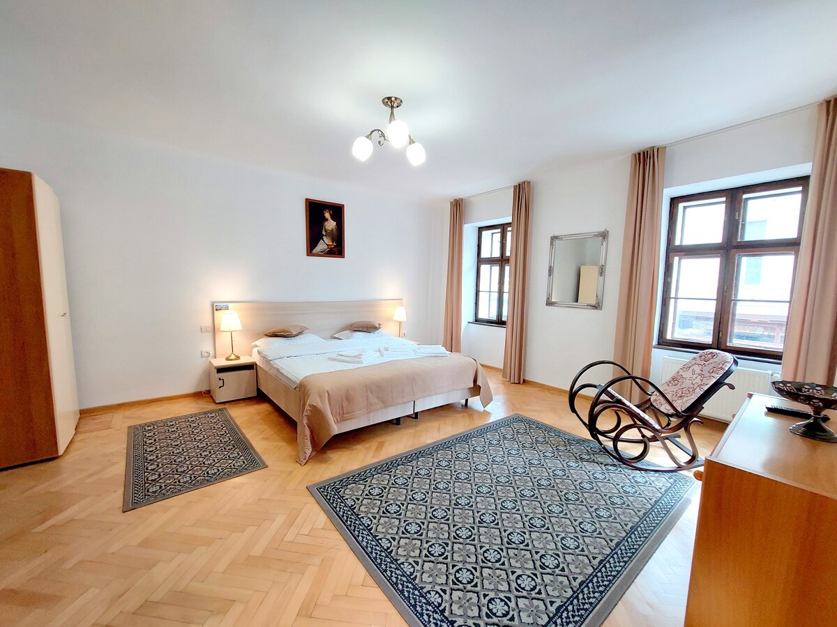 Sleeps 8 • 3 bedrooms • 2 bathrooms • Old Town Old Town Story House is a spacious apartment, ideal for families and groups, located right in Brașov’s historic center. Just 200 m from Council Square and the Black Church. The apartment features 3 separate bedrooms, a generous 50 sqm living room with dining area, a fully equipped kitchen, a terrace, and free Wi-Fi. Perfect for comfortable 3–7 night stays, offering space, privacy, and quick access to the Old Town atmosphere.
