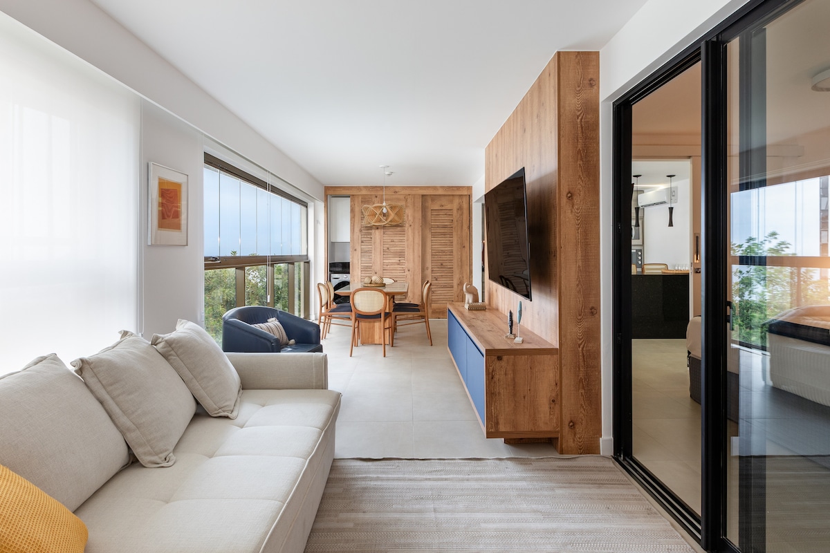 Velkommen til Copanema Azul, en moderne og elegant lejlighed, hvor nuancer af blå, naturligt lys og en sideudsigt over havet skaber en let, sofistikeret og dyb Rio-atmosfære. Lejligheden ligger på 9. sal og har en charmerende udsigt over Copacabana-havet fra stuen. Med 95 m² meget godt fordelt, rummer boligen komfortabelt op til 4 gæster, hvilket er ideelt for par, små familier eller rejsende, der værdsætter komfort, æstetik og førsteklasses beliggenhed.