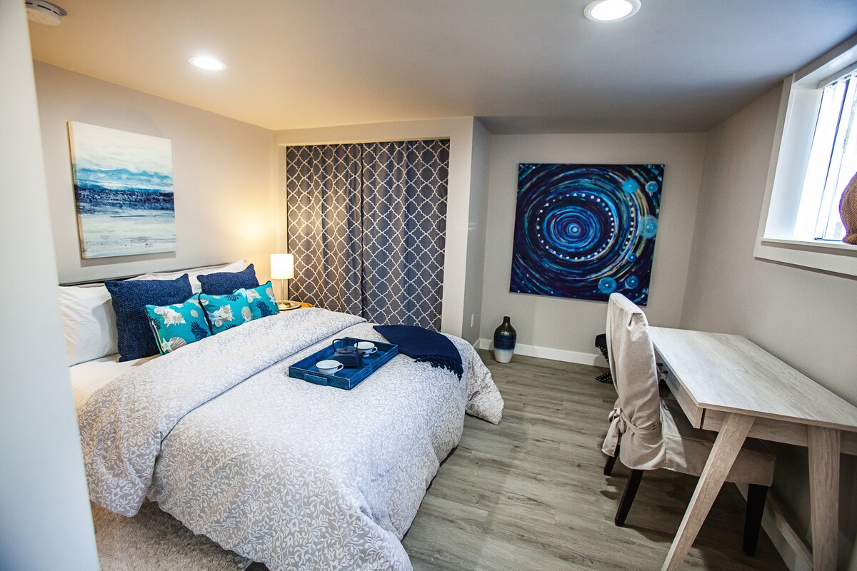 Soak, paddle, and unwind at Chico Bay Inn: your adults-only waterfront retreat. Our artistically designed & thoughtfully appointed Garden Suite is a guest favorite, blending luxury with effortless comfort. This suite features a king bed with memory foam mattress, spa-inspired bathroom, OLED TV, and fully-equipped kitchen perfect for preparing gourmet meals. Step outside to fire up your gas grill, relax by your fire table, or wrap yourself in a sherpa blanket for a beachside campfire at sunset.