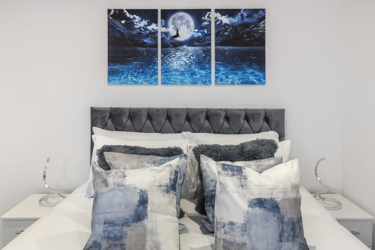 Denne moderne lejlighed med 1 soveværelse og 1 badeværelse har plads til op til 4 gæster og tilbyder stil, komfort og bekvemmelighed. Kun 4 minutters gang til Hendon Central Station og 10 minutter til Brent Cross Shopping Centre, med Camden Market kun 20 minutter væk. Nyd et hyggeligt soveværelse, et elegant badeværelse med badekar og bruser, en sovesofa, et tv med Netflix og et fuldt udstyret køkken. Bemærk, at et refunderbart sikkerhedsdepositum (godkendt og tilbageholdt af din kortudbyder, ikke opkrævet af os) er en del af bookingprocessen.