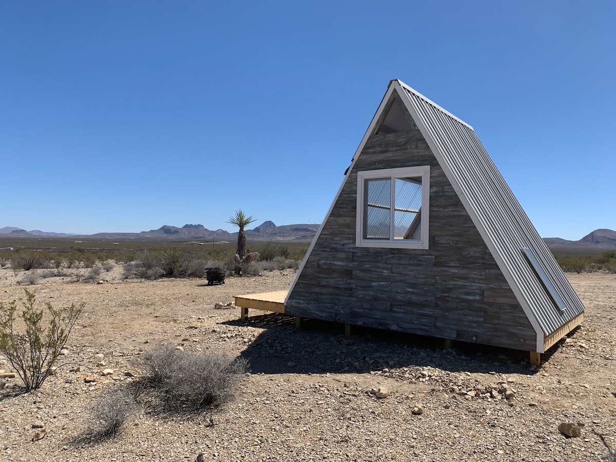 Enhed i ørkenen - stille, mørk himmel, men ikke for afsides. 1 km fra 118, 1/2 mile fra fortovet! Smuttur fra lyset og støjen fra spøgelsesbyen i vores Convertible Wall glamping A-ramme! Wi-fi/affald på ejendommen. Beliggende 20 miles fra Big Bend National Park W Entrance & Ghost Town. Vejen er tilgængelig for 2-hjulstræk, lav frihøjde og vådt vejr. 5 minutter fra State Highway 118. Strategisk placeret for dit privatliv og din udsigt!