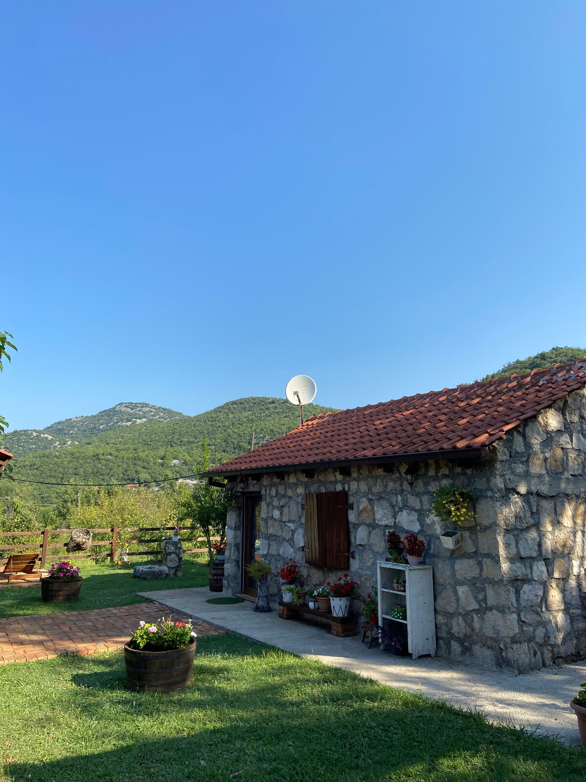 An idyllic countryside retreat in an old Montenegro peasant stone house, facing a vineyard, surrounded by pomegranates and fig trees, and with a great view on the mountains. This is a perfect hideaway from city hustle and traffic noise. As a mountaineering guide and former diplomat, I will be happy to welcome visitors from all corners of our world, share memories of my old family house and history of Montenegro, assist them in planning and organizing their tours in our beautiful country.