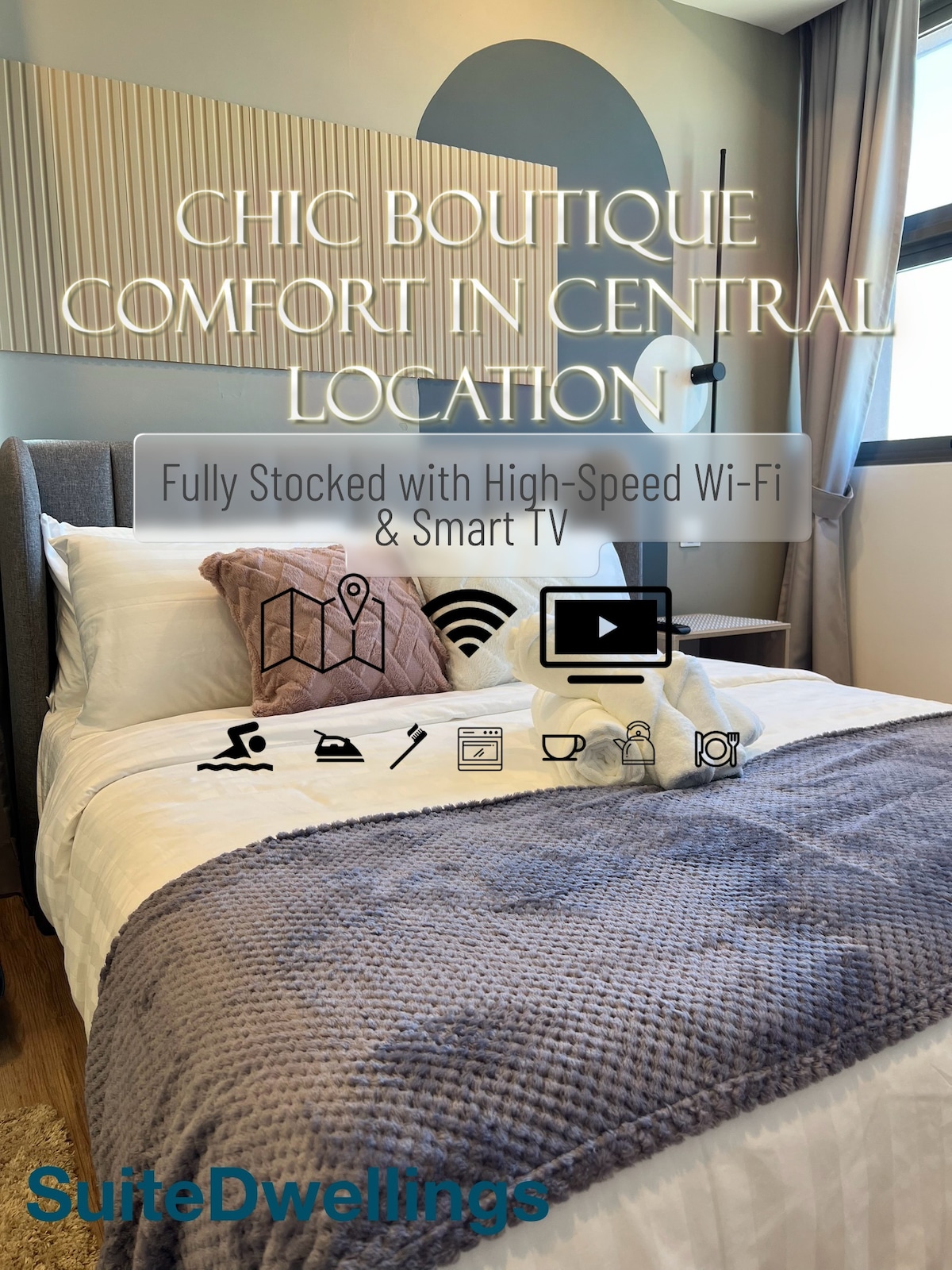 Oplev luksus i vores designerlejlighed med en trendy og hyggelig atmosfære og rummelige opholdsrum. Nyd gratis privat parkering, en infinity sky pool, et fuldt udstyret fitnesscenter og et kontorfællesskab. Med offentlig transport kun en kort gåtur væk er det nemt at udforske byen. Perfekt til venner, turister, par, familier eller forretningsrejsende, der søger afslapning eller en sjov ferie. Denne unikke bolig har sin egen særlige stil.