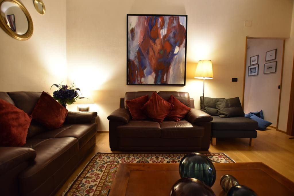 Fuld af karakter og rummelig lejlighed, hvor antikke møbler og malerier kombineres med ejerens egne kunstværker som maler. Dekorationen er elegant, men meget ukonventionel. CIN IT027042C2WJJLYVZD - Regional Code M0270423241 Beliggende i San Polo, 3 minutters gang fra Frari-kirken og 5 minutters gang fra Rialto. Det nærmeste vaporettostoppested er San Tomà – 7 minutters gang. Turistskatten i Venedig på 4 euro per gæst per nat betales ekstra lokalt ved indtjekning