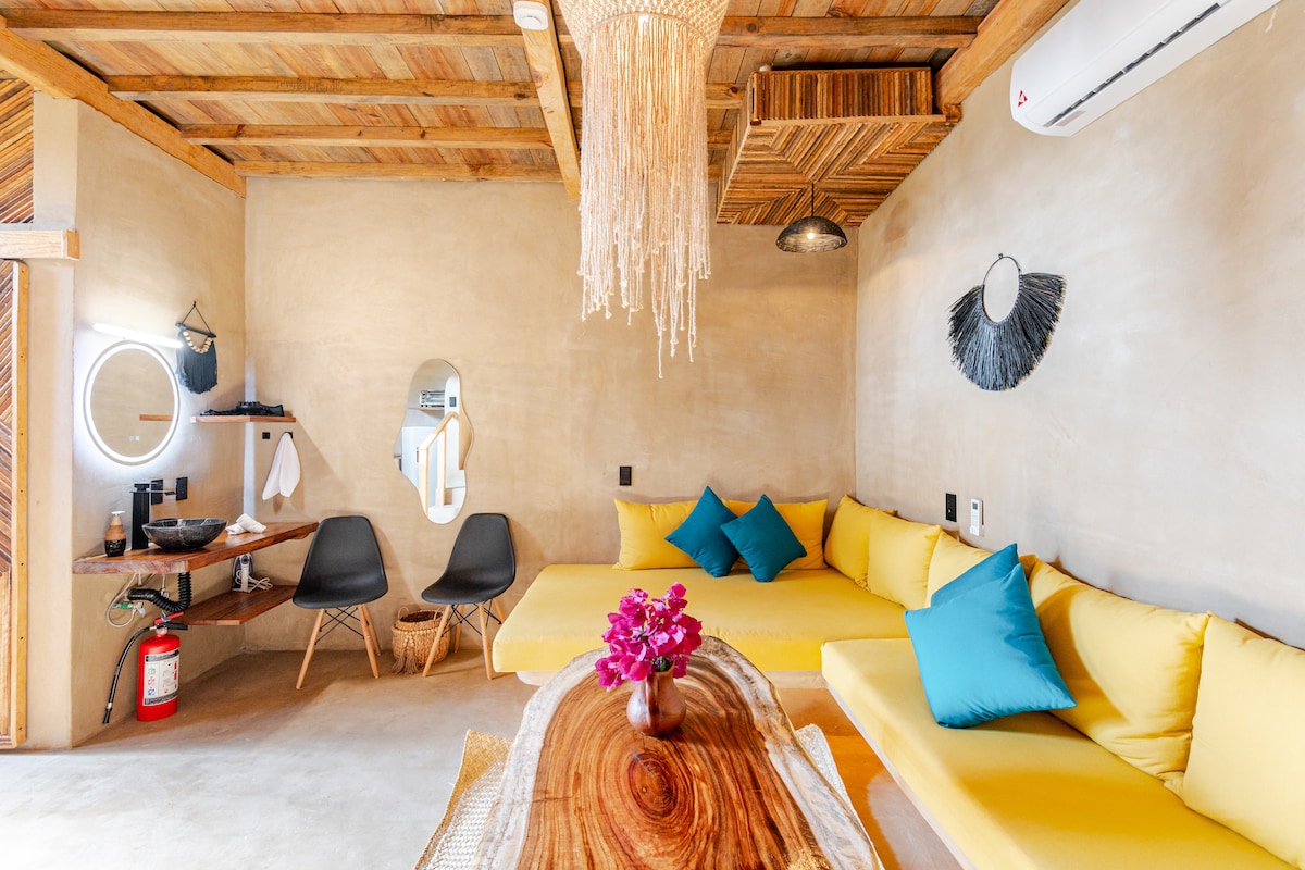 Descubre la capital del Surf en nuestro acogedor bungaló campestre Yú (En Zapoteco Barro o Tierra), Zicatela (Del Náhuatl, lugar de espinas grandes). Estamos ubicados a 500 m o 4 cuadras de la playa. Nuestros huéspedes podrán caminar a las siguientes playas para surfear: La Punta de Zicatela y Zicatela, zona de restaurantes y bares en el barrio de la Punta, Mercado Zicatela, gasolinerias, oxxos y acceso a transporte público dentro de un radio de 1.5 km.