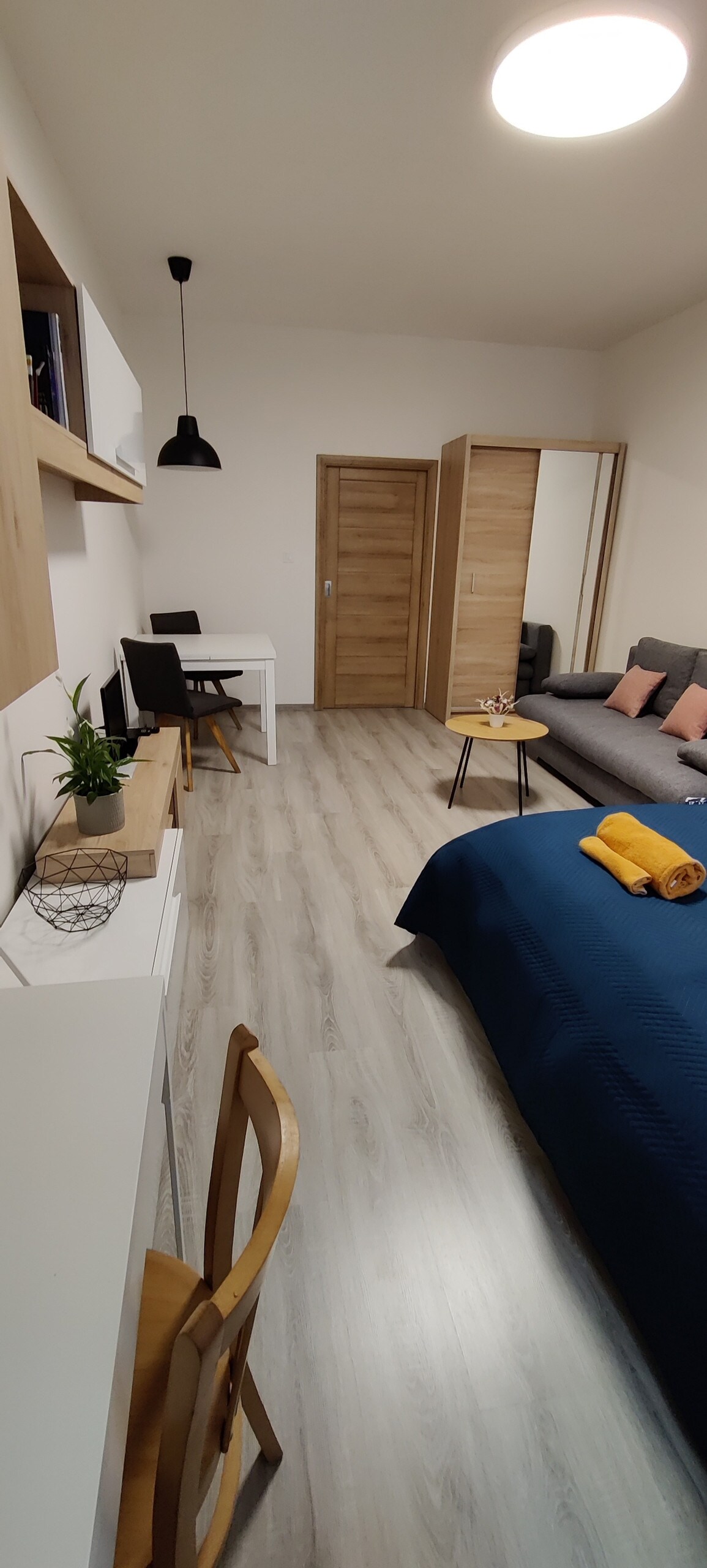 Velkommen til vores moderne lejlighed! Den ligger på en rolig gade i hjertet af byen, ideel til par, forretningsrejser eller familier med børn. Lejligheden tilbyder et soveværelse med dobbeltseng, en stue med en sovesofa, et fuldt udstyret køkken og et moderne badeværelse. Der er gratis Wi-Fi, TV, vaskemaskine, tørretumbler og parkering. Tæt på turistattraktioner, restauranter og offentlig transport. Hurtig og kontaktløs ind- og udtjekning, kæledyr er tilladt. Kom og nyd komfort og stil!