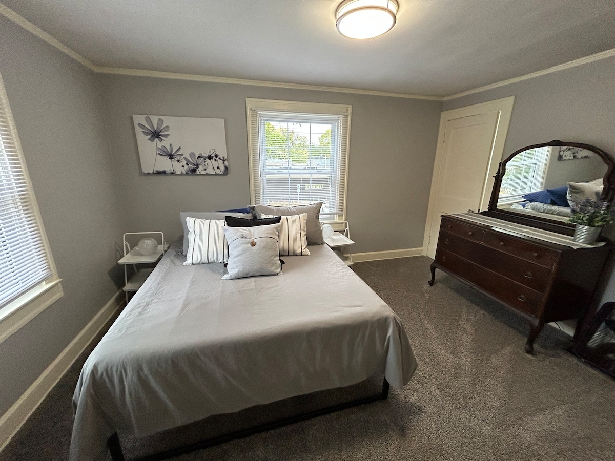 Fra det øjeblik, du kommer ind, omgiver dette historiske hjem (bygget i 1939) dig med sin charme. Nyd originale trægulve, to soveværelser (det ene med en kingsize-seng, det andet med en queensize-seng), tre smart-tv'er, bredbånds-Wi-Fi og et fuldt udstyret køkken, så du kan lave de fantastiske middage, du kan nyde i spisestuen eller i morgenmadskrogen. Vaskemaskine og tørretumbler i kælderen. Pejsen er IKKE brugbar - kun til udstilling! Sikkerhedsfunktioner omfatter ADT, ring og tastaturindgang. Tæt på park, hospital og motorvej.