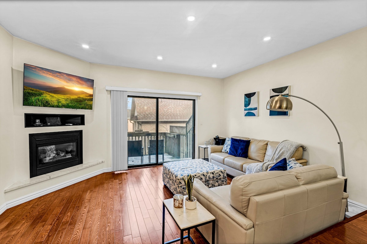 Dette stilfulde overnatningssted, der ligger på Appleby Line og Dundas i Burlington i Ontario, er perfekt til sammenkomster og arbejdsophold hjemmefra. Uanset om du er på besøg i forbindelse med forretning eller fritid, tilbyder det det ideelle sted at slappe af, samarbejde og nyde komforten i et velindrettet hjem. Med sin bekvemme beliggenhed er du tæt på lokale faciliteter, spisesteder, shopping og transport, hvilket gør det til en god base for dit ophold.