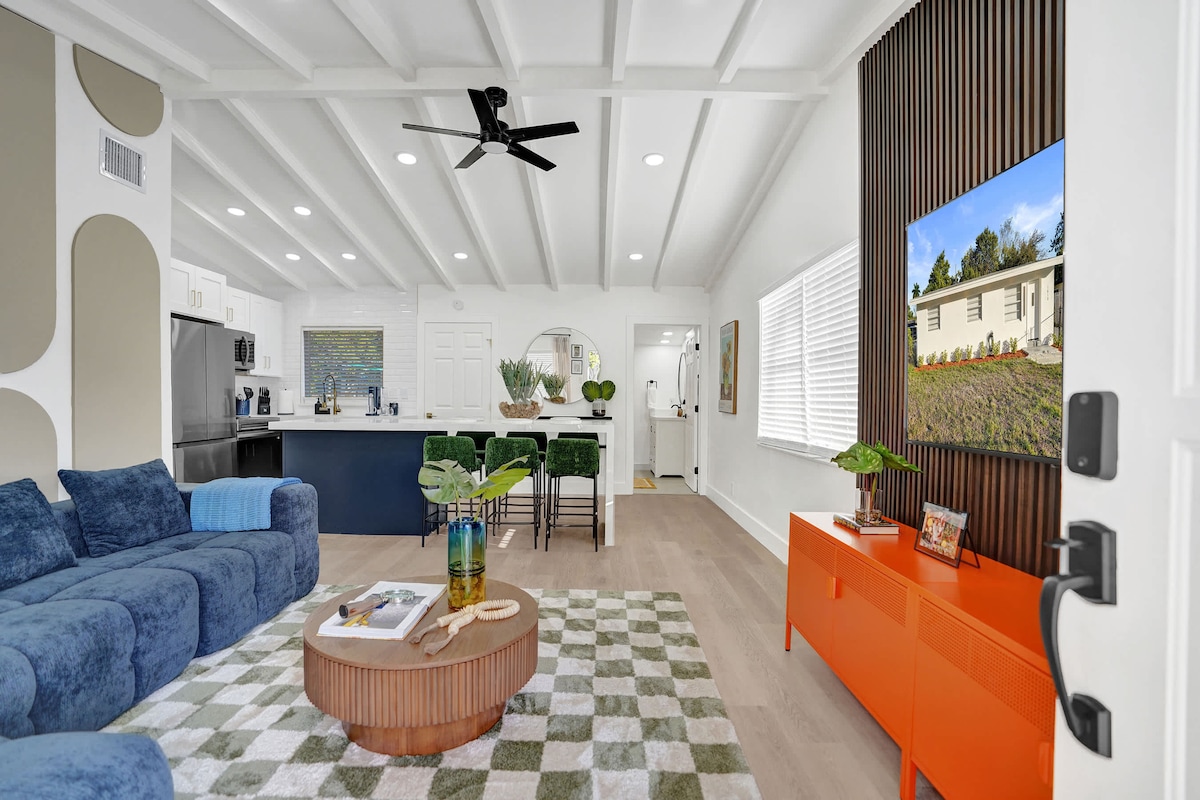 Designet fristed for velvære og socialt samvær, fuldt indhegnet og afspærret. Denne førsteklasses feriebolig med tre soveværelser har to suiter med kingsize-dobbeltseng og en privat, tropisk oase. Luksuriøs afslapning: badekar til varmt og koldt bad + udendørs regnbruser. Eksklusiv underholdning: privat putting green, boccia, kæmpe Connect Four og Jenga i kæmpestørrelse. Nyd et specialfremstillet vægmaleri af en kunstner, et kokkekøkken og middage i resort-stil. Perfekt til grupper af voksne, personer, der søger velvære, og hjemmearbejdende fagfolk, der søger et førsteklasses ophold i Fort Lauderdale.