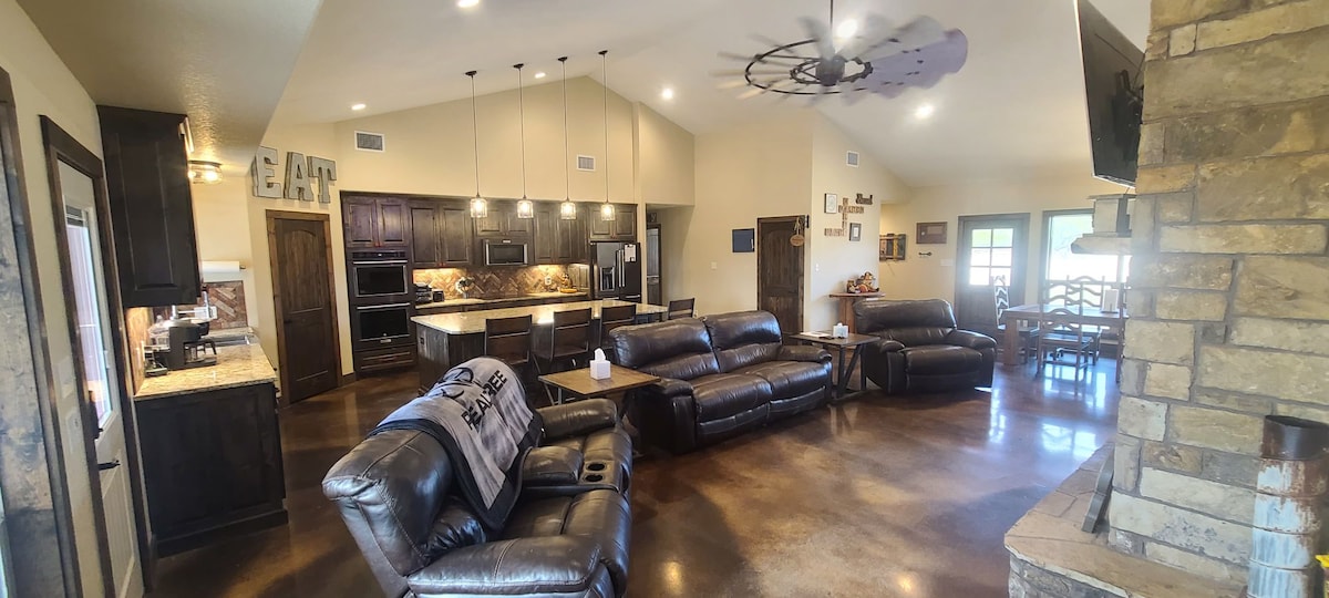 Træd ind i vores rummelige og charmerende tilflugtssted fyldt med naturligt lys og designet med en åben grundplan, der blander komfort og bekvemmelighed. Perfekt beliggende få minutter fra Howard Payne University og Hendrick Medical Center, har du nem adgang til lokale attraktioner og spisesteder. Nyd et fuldt udstyret køkken, der er klar til din kulinariske fornøjelse, og tag udenfor til en overdækket terrasse med et forberedelsesbord, grill og masser af siddepladser til sammenkomster eller rolige aftener under stjernerne.