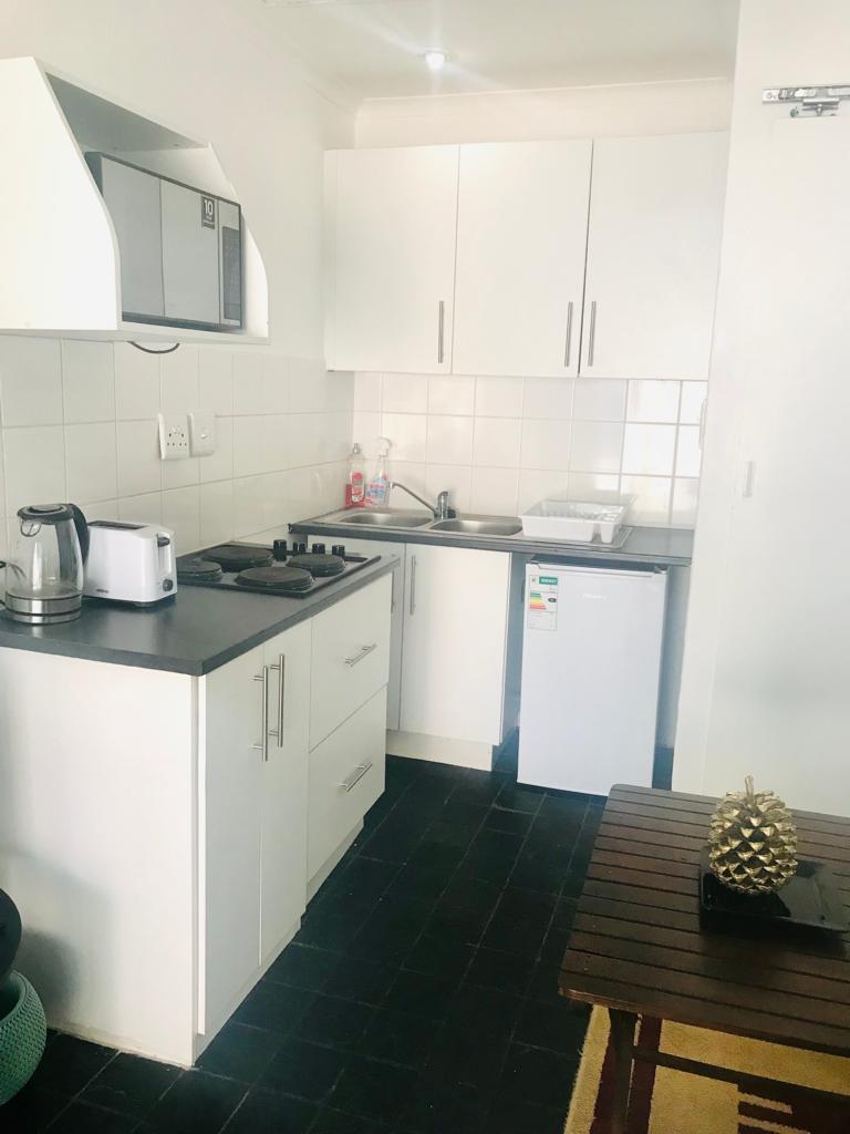 Fuldt møbleret moderne, selvforsynende sikker og fuldt udstyret privat atelierlejlighed med solenergi, så du ikke vil blive påvirket af strømafbrydelser! Beliggende i et roligt, sikkert kvarter, tæt på alle større indkøbscentre og underholdningsområder. Boligen er sikker, rolig og stilfuld, nyrenoveret og perfekt til forretningsfolk eller rejsende par. Bemærk, at denne lejlighed er strengt røgfri. Der er meget venlige hunde på ejendommen, som elsker at hilse på gæster ved ankomsten.