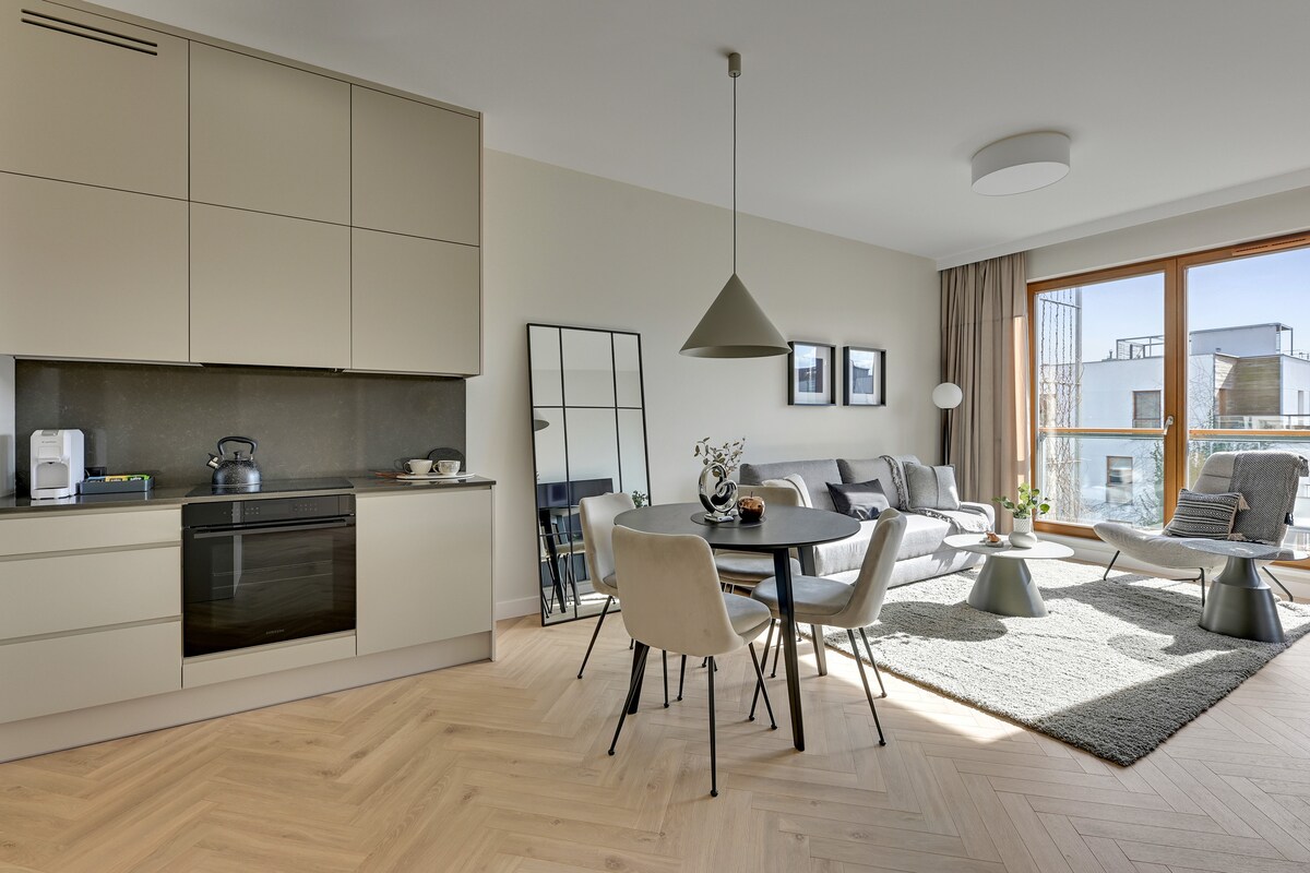 50 m2 i Zajezdnia Wrzeszcz, ul. Hallera 134, fra ul. Grudziądzka. 1,7 km til stranden i Brzeźno – indgang nr. 50. En stue med tekøkken, et soveværelse og et badeværelse samt en balkon på 8 m2 og en parkeringsplads i garagen, adgang til et fitnesscenter i bygningen. Høj finishstandard. Udstyret med induktionskogeplade, køleskab, opvaskemaskine, Krups automatisk kaffemaskine, vaskemaskine, dobbelt sovesofa. I ejendommen: pizzeria, Żabka, Biedronka, restauranter: Mimosa, Al Bacio, Con Dao Asian. 800 m til Lidl.
