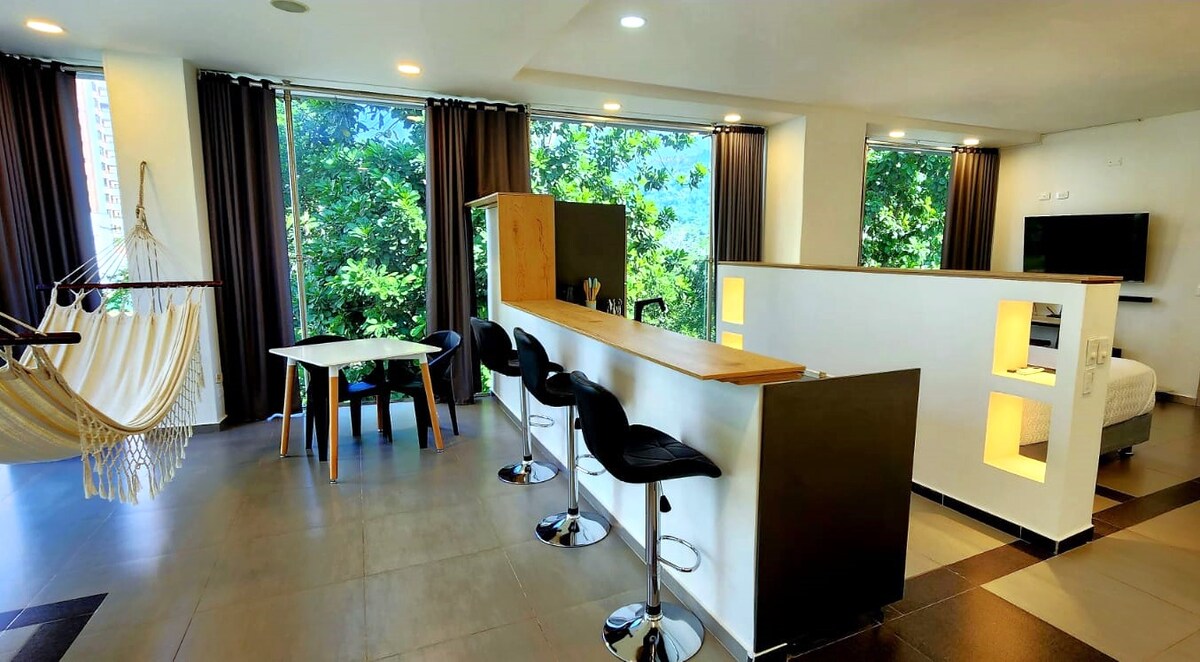 Nyd et moderne loft i Cabecera del Llano, perfekt til afslapning og hvile, ideel til par. Kingsize-seng med 55" tv foran sengen, gulv-til-loft-vinduer med mørklægning, stue med hængekøje og spisestue, udstyret køkken, A/C, wi-fi med backup og kraftværk. Arbejdsområde med bord og ergonomisk stol. Indtjekning uden vært med koder og elevator. Minimarked døgnet rundt på 1. sal. Omgivet af parker, caféer, restauranter og indkøbscentre. Komfort, stil og beliggenhed på ét sted!