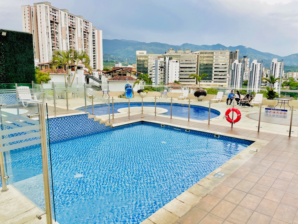En fantastisk udsigt, nyd en moderne og veludstyret lejlighed. Lad dine ideer flyde i arbejdsområdet, der omfatter en 27 tommer skærm, ergonomisk stol og skrivebord. Fordyb dig i filmglæde med Netflix, Disney +, Star +, spændende sportsbegivenheder på Espn, UHD-tv'er, 65 tommer med surround sound og 50 tommer. Slap af i den panoramiske swimmingpool, nyd solen og udendørslivet på højderne. Del og skab aktiviteter i denne smukke lejlighed. Vi glæder os til at byde dig velkommen