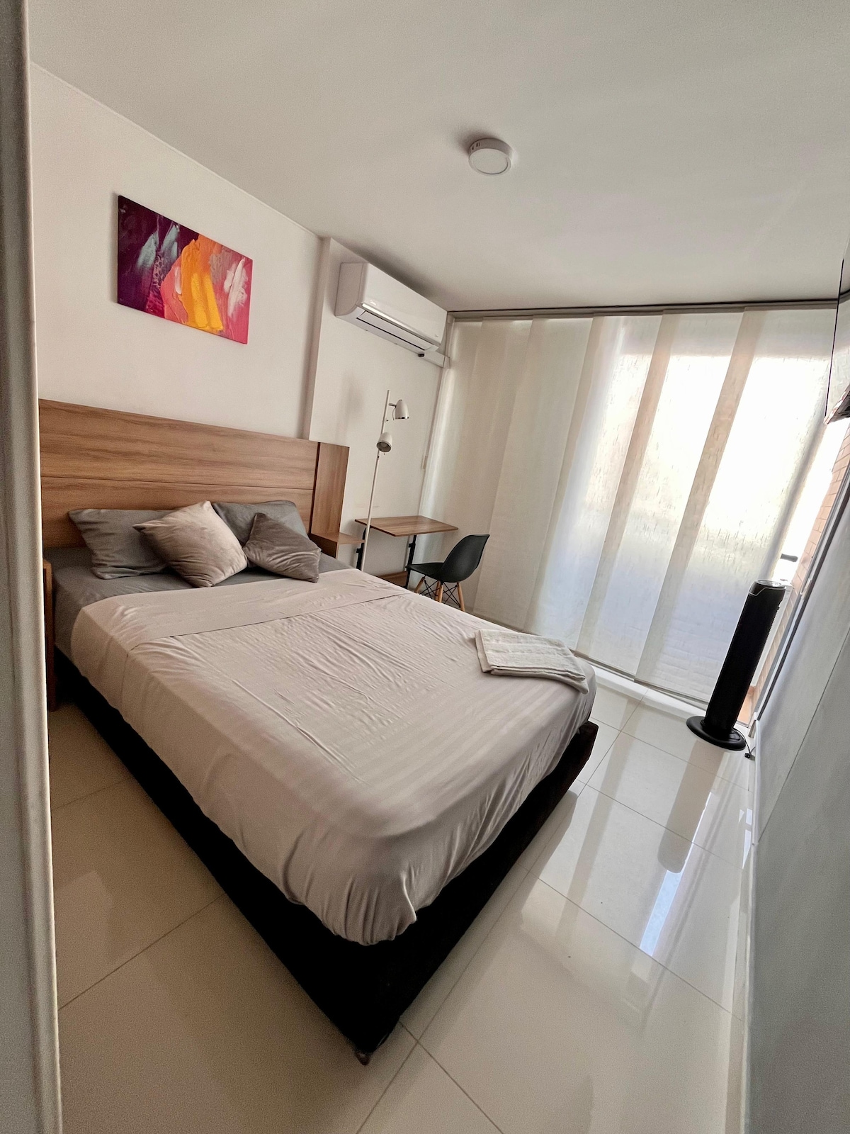 En studiolejlighed med separat badeværelse i Alvalrez-kvarteret i Bucaramanga, meget centralt, 5 minutter fra hovedgaden og centrum med en flot udsigt over hele storbyområdet Bucaramanga. Den ligger 200 meter fra megamall-indkøbscenteret, hvor du finder alt, hvad du har brug for, og på den anden side af gaden er der en D1-butik med husholdningsartikler