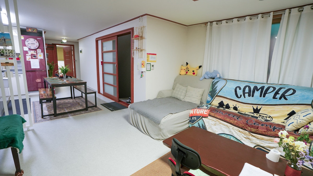 - Dobbeltdækkerhus med 20m² tagterrasse beliggende i centrum; Hongdae, Mangwon og Hapjeong-kvarteret - Renoveret for nylig med vintage-danske møbler - Beliggende i et beboelsesområde kun få meter fra distrikter, hvor de lokale som Hongdae, Mangwon-markedet, Yeonnam og Han-floden - Døgnåbne cv'er, små caféer og restauranter er også lige rundt om hjørnet * Det er ikke tilladt at feste * 상업촬영 사전협의 * Øjeblikkelig udtjekning, hvis det overskrider antallet af gæster * toiletvandstrykreparation udført
