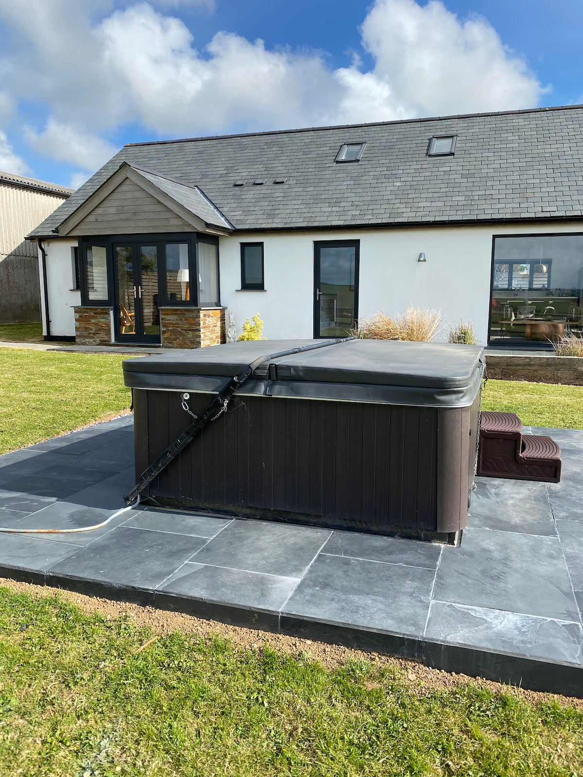 Denne private lade har alt, hvad du har brug for til et roligt tilflugtssted. På en rolig og privat ejendom, kun 10 minutters kørsel til Bude strande. Brug grillhuset, udendørs brusere, pejs, boblebad og sauna, før du finder dig til rette ved brændeovnen og Smart TV. Perfekt til par. Ingen babyer eller børn under 12 år. 2 gæster har adgang til det største soveværelse og eget badeværelse, grupper på 4 har adgang til begge soveværelser/badeværelser. Kun 1 hund. Fuld lukket have, hundesikker. Et must for et afslappende tilflugtssted og afslapning