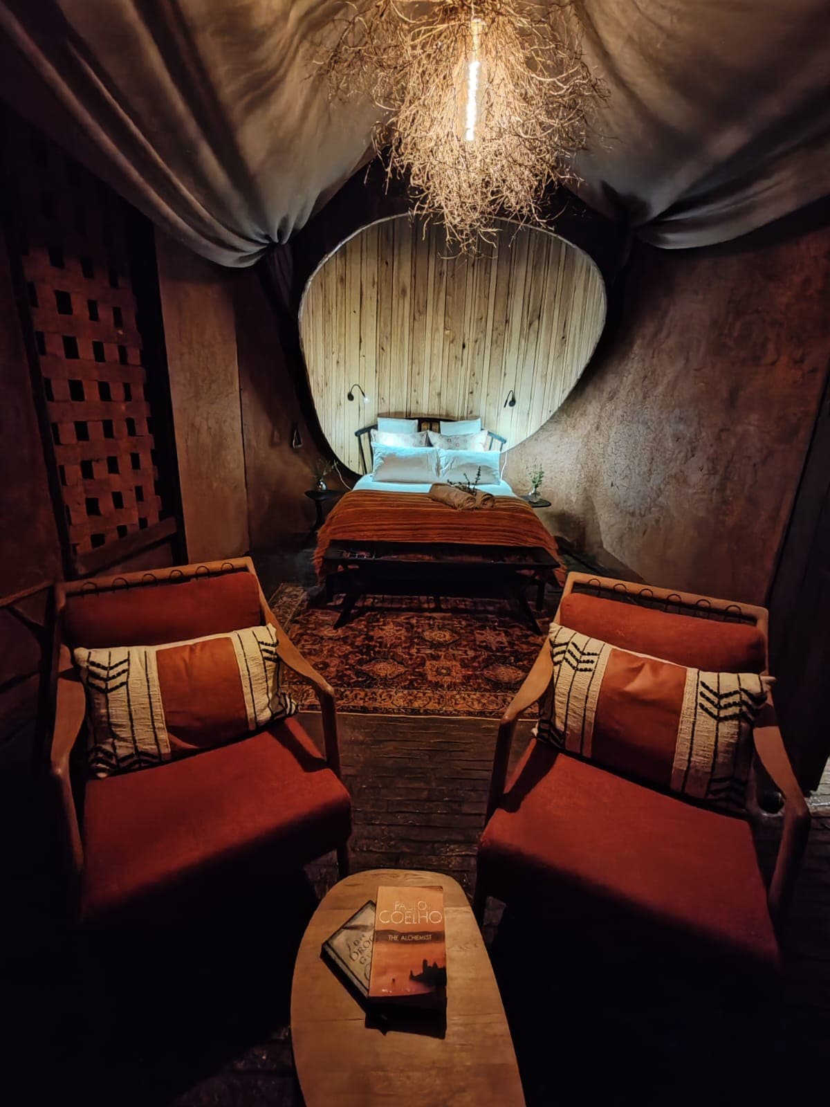 Denne private gårdhytte med åbent planløsning og egen forplejning tilbyder gammeldags charme med et stilfuldt, minimalistisk præg. Den er designet til miljøbevidst livsstil, kører på minimal elektricitet og har køle-fryseskab, vandkøler, gaskomfur og gasgejser. Selvom der ikke er tv, wi-fi eller stærk netværksdækning, er det det perfekte sted at slappe af og koble fra. Med luksuslinned og hyggelige detaljer overalt tilbyder hytten en fredfyldt, behagelig udflugt – dit ideelle hjem væk fra hjemmet på gården.
