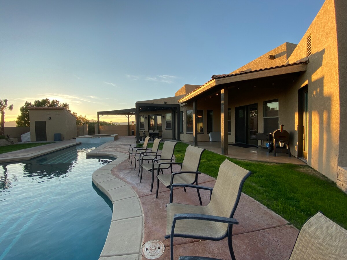 Stort moderne hjem med en privat ørkenoase, der tilbringer en afslappende weekend omkring poolen, eller få en familie til at mødes i den store smukt anlagte baghave. Shuffleboard, bordtennis, poolbord og meget mere har denne bolig alt, hvad du har brug for. Denne bolig kan prale af en 3-bilbåds dyb garage, så der er masser af plads til at parkere og opbevare dit vand- eller ørkenlegetøj. Der er også en ekstra lang indkørsel langs højre side af boligen til yderligere parkering. Kæledyrsvenlig. Spørg efter store sammenkomster.