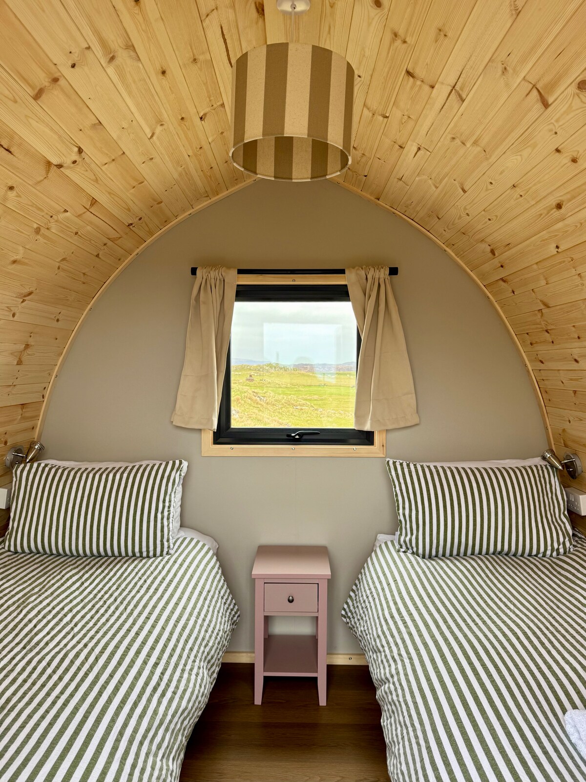 Small Pod with two single beds at Iona Campsite.