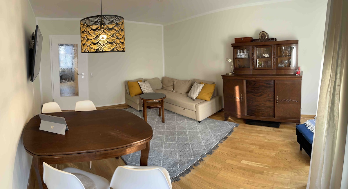 Boligen er beliggende i en rolig, central beliggenhed i byen. Du bor i et velholdt byhus. Stop for sporvogn og bus kun 2 minutters gang væk. Byens centrum ligger 2 km væk. Der er 2 restauranter lige på gaden. Du bor i en røgfri lejlighed, kæledyr er ikke tilladt.
