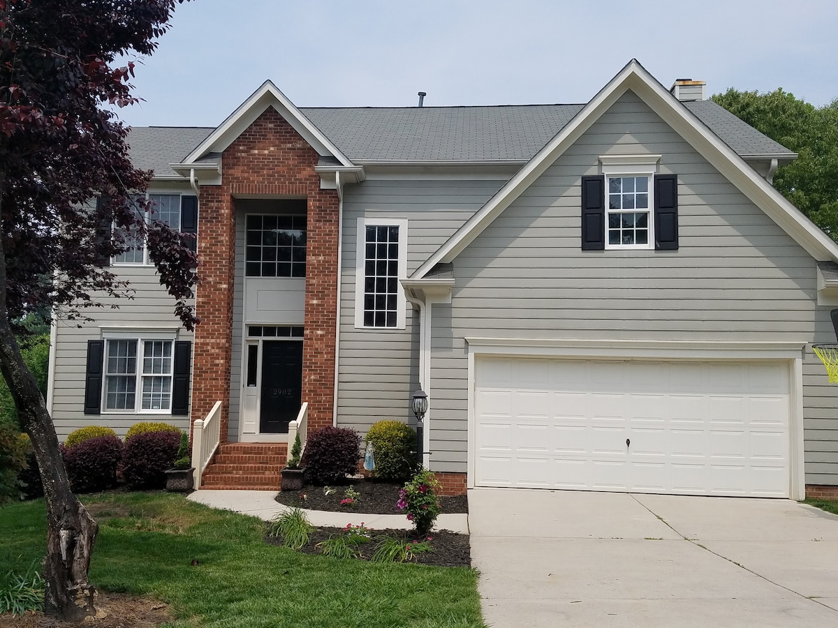 Welcome to our vacation home, a gorgeous lakefront property. We escape from our city lives to recharge here, and would love to share the experience of our retreat haven ! There are stunning lake views from every single room and 3 backyard porch sections for you to enjoy! It's THE perfect getaway for nature lovers! Close to Research Triangle, Durham downtown, Duke University, UNC, etc... We also offer a late check-out of 1pm so you don’t need to rush on your last day checking out !