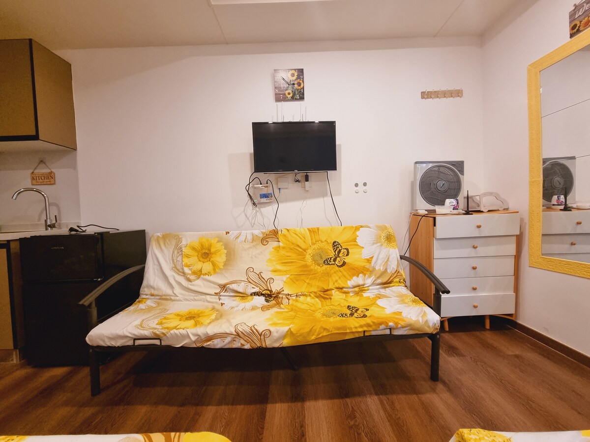Studielejlighed til kortvarigt ophold, god til 4 personer, kun to minutter fra Session Road og SM Baguio. Komplet med apparater såsom køleskab, mikrobølgeovn, riskoger, induktionskomfur, elkedel, brødrister, luftfryse, elektrisk ventilator, fjernsyn og WIFI. Madlavning er tilladt.