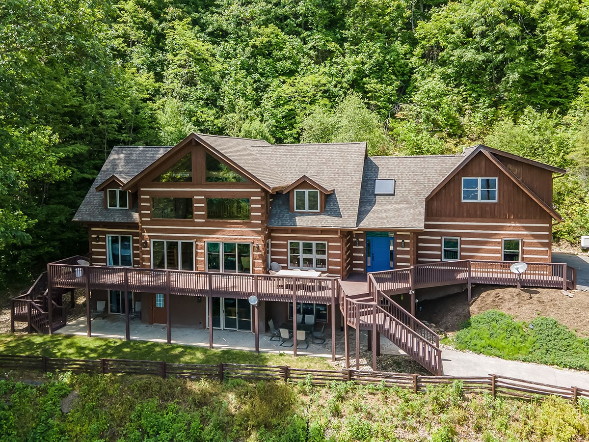 5,000 sq ft of luxury resting in the forest mountains outside of Asheville on 4 private acres. Stunning log cabin completely renovated in ‘21. We’ve got a fully equipped kitchen, dining for 14, fireplace, a 2-story great room, & brand new 7-person hot tub. Family-friendly amenities include a game room & custom baby gates for all levels. All 5 bedrooms have long-range views & all 5 bathrooms have been luxuriously appointed. Enjoy 2 levels of expansive decks to soak in the incredible view.
