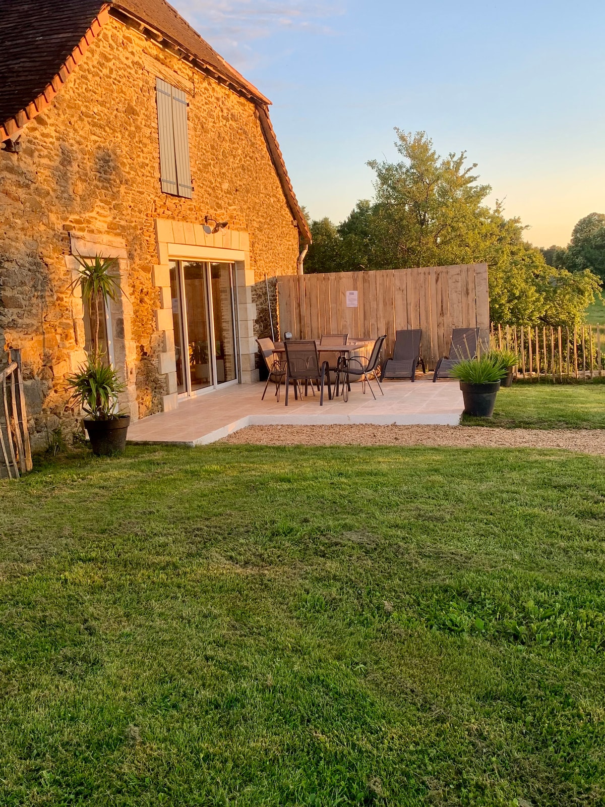 Charmerende gîte i renoveret Périgourdine-hus på 79 m2, stue på 40 m2 med fuldt udstyret åbent køkken, stue, opholdsstue. 40 m2 terrasse med uhindret udsigt over dalen. Ingen naboer, roligt på landet, ikke indhegnet grund med privat adgang og parkeringsplads.