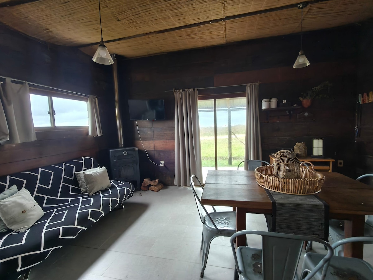 Smuk hytte i Cabo Polonio. Hyggelig, familievenlig og til venner. Tæt på alt, men langt fra støj. 150 meter fra terminalen og 150 meter fra den sydlige strand. Den har elektricitet, gasvarmeapparat og køleskab med fryser. To soveværelser, et med dobbeltseng og et med tre senge. Stue med sovesofa, brændeovn, smart-tv og lyd med bluetooth. Overdækket område mod begge strande, grill og plads til bål. VIGTIGT: Der er ikke lagner eller håndklæder.