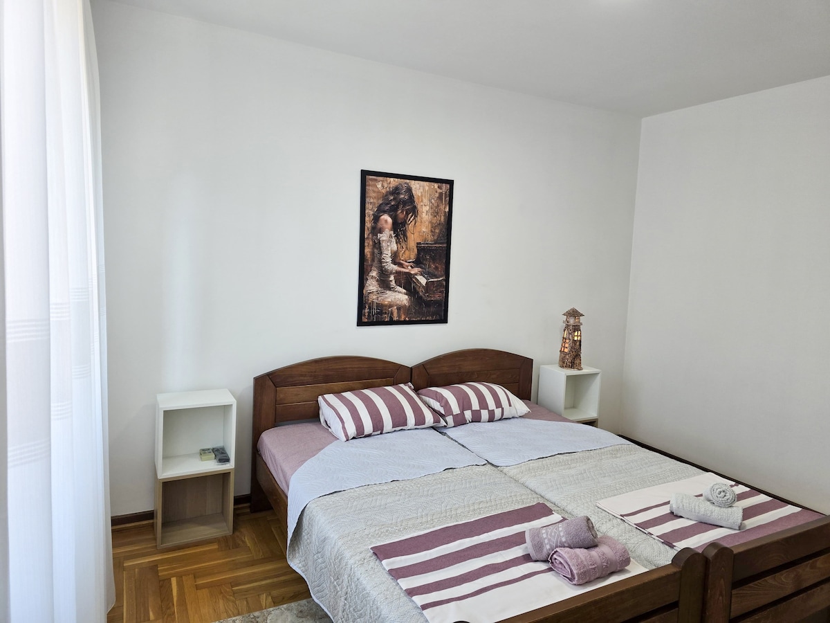 Denne helt nye luksuslejlighed er 70 kvadratmeter stor og ligger i hjertet af Čačak. Det rummelige soveværelse har en stor queensize-seng, mens det mindre soveværelse har en behagelig enkeltseng. Stuen har en udtrækssofa til ekstra gæster. Lejligheden har to badeværelser, med gulvvarme i det større, og et fuldt udstyret køkken. Højt til loftet (3 meter) Lys og rolig enhed Aircondition Wi-fi 55 tommer tv Privat parkering Sikker ejendom