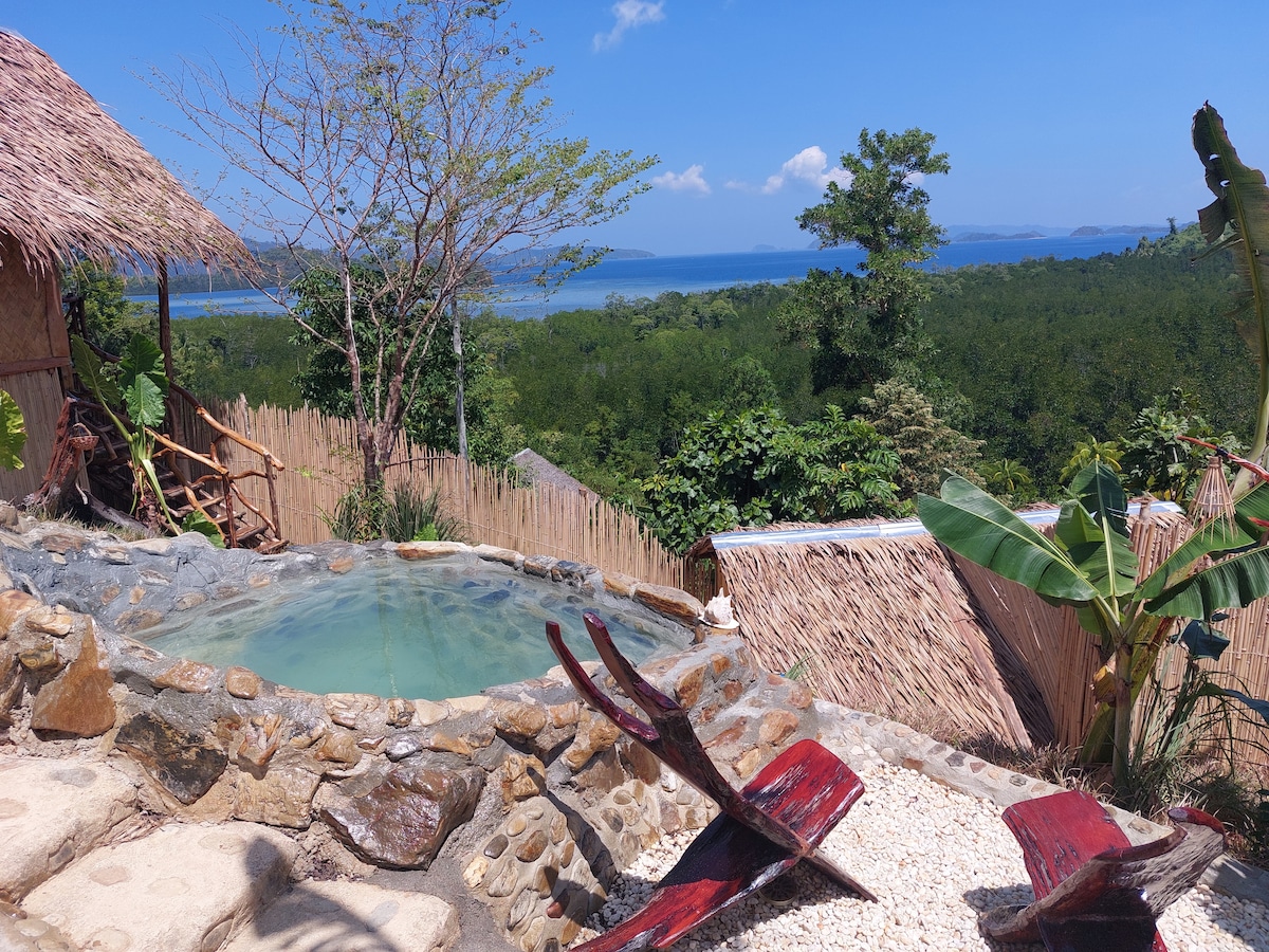 Beliggende på stranden i en lille bugt på Capsalay Island, lige foran Port Barton, ud mod det Sydkinesiske Hav, omgivet af andre øer, i en marinepark. Nedsænket i en uberørt natur kan du finde fred og ensomhed og nyde naturlig tid i din egen lille hytte nedsænket i en smuk have lige ved stranden.