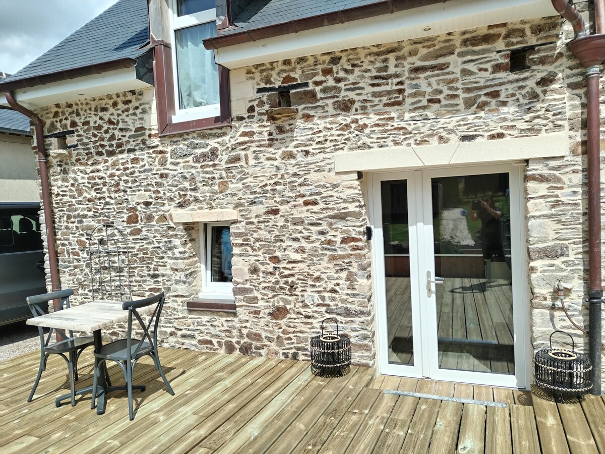 Situé dans le centre d'Aunay sur Odon, accès facile à 5 min de la A84, 25min de Caen , 40 min des plages du débarquement et 1h15 du Mont Saint Michel, idéal pour visiter la Normandie.. Appartement de 35m2 entièrement rénové (2015) au sein d'une ancienne maison en pierre en centre ville avec tous commerces . Entrée indépendante au RDC avec un parking privatif clos (possibilité garage moto) , jardin et barbecue. Visites, découvertes, balades..